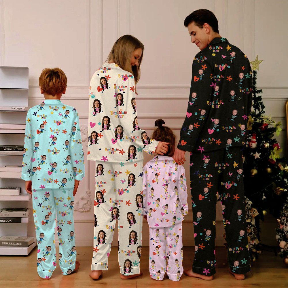 Il colletto alla cubana conferisce alla camicia un aspetto trendy ed elegante che la distingue dai comuni pigiami. Il design con bottoni aggiunge un tocco di raffinatezza, rendendolo adatto sia per andare a letto che per rilassarsi in casa. I pantaloni con coulisse assicurano una vestibilità comoda sia per i bambini che per gli adulti. Ma ciò che rende davvero unico questo set è la possibilità di aggiungere una foto personalizzata con la faccia di un cartone animato. Immaginate di vedere l'adorabile volto del vostro bambino o di un membro della famiglia stampato sulla maglietta, che vi strapperà un sorriso ogni volta che la guarderete. È un modo divertente e creativo per rendere questo pigiama davvero unico.