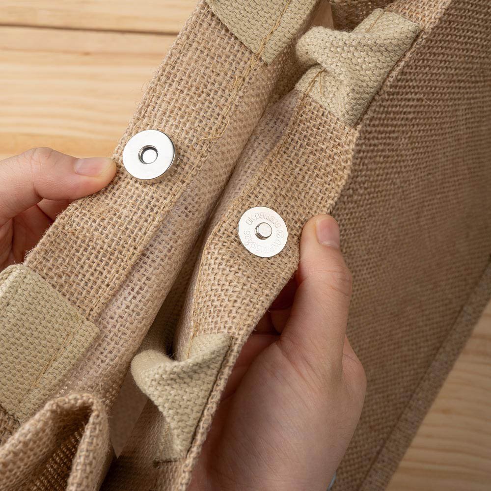 La nostra borsa è realizzata in juta di alta qualità ed è disponibile con tre chiusure: aperta, con cerniera e con fondo a scatto magnetico. L'elevata resistenza alla trazione, la bassa duttilità, la solidità e la durata garantiscono che il prodotto possa resistere all'uso quotidiano e trasportare oggetti pesanti senza strapparsi o rompersi.