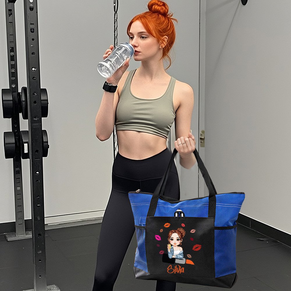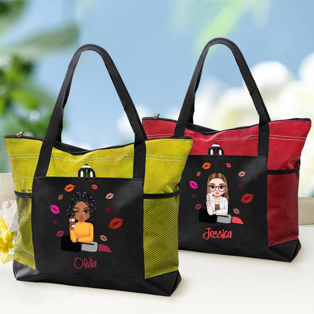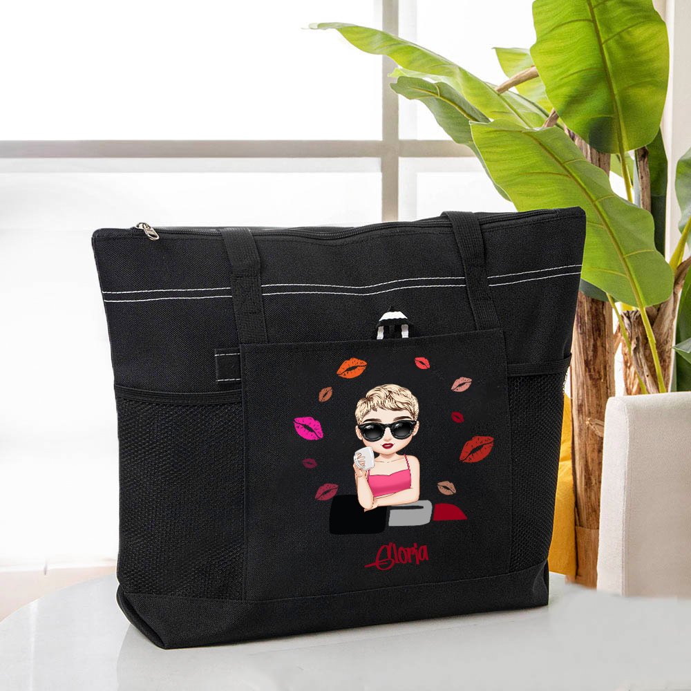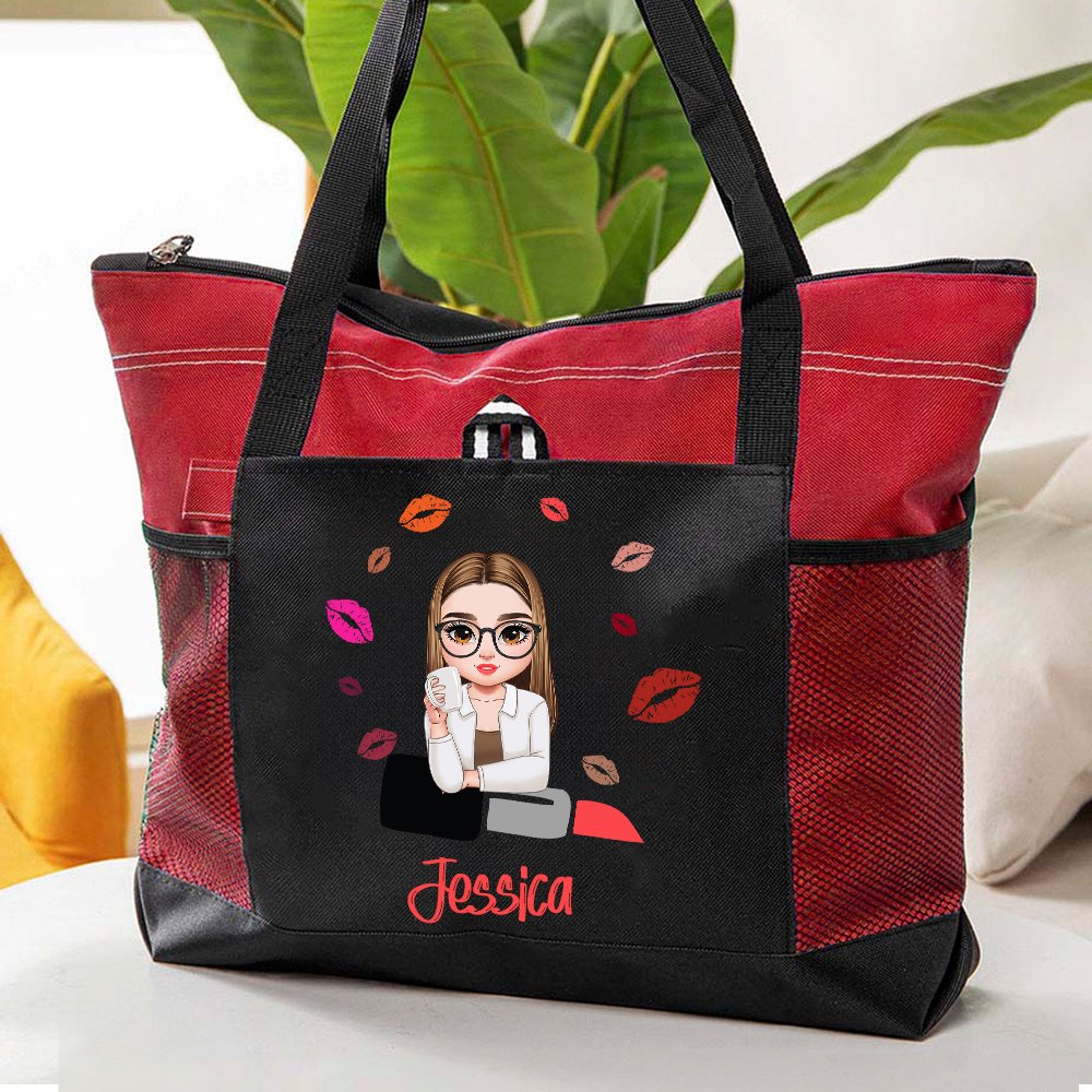 Questa borsa tote è decorata con una simpatica ragazza in stile cartone animato alla moda, circondata da motivi di rossetti, ed è divertente e piena di vitalità. Inoltre, puoi personalizzare il nome per rendere ogni borsa unica e mostrare perfettamente la tua personalità e il tuo stile.