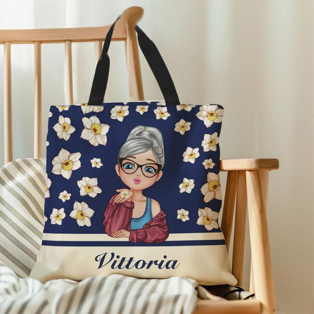 Questa borsa unisce dolci illustrazioni di bambine in stile cartone animato con eleganti fiori di nascita, dando vita a un design originale e ricco di significato. Supporta una personalizzazione completa: puoi scegliere il colore di sfondo (nero, rosa, blu navy, ecc.), modificare i dettagli dei personaggi, abbinare fiori di nascita personalizzati e aggiungere il tuo nome.