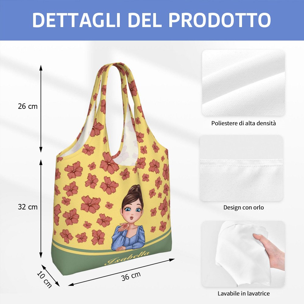 La borsa presenta un design affascinante con una ragazza in stile cartone animato e fiori del mese di nascita, creando un’atmosfera romantica e delicata. Ogni fiore rappresenta emozioni e significati diversi, permettendoti di esprimere la tua personalità e il tuo fascino unico. Puoi personalizzare l'immagine della ragazza, i fiori, il colore della borsa e il tuo nome, rendendo ogni creazione un pezzo davvero esclusivo.