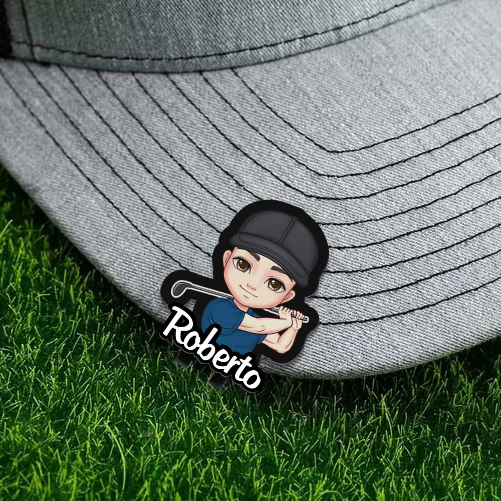 Questa clip per cappello presenta un personaggio in stile cartone animato che gioca a golf, incarnando lo spirito e la passione per questo sport. Ogni dettaglio è curato per catturare l’essenza del mondo del golf. Puoi anche personalizzarla con il tuo nome, aggiungendo un tocco unico al tuo equipaggiamento e distinguendoti sul campo.