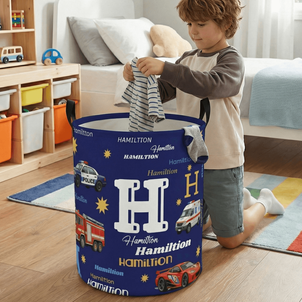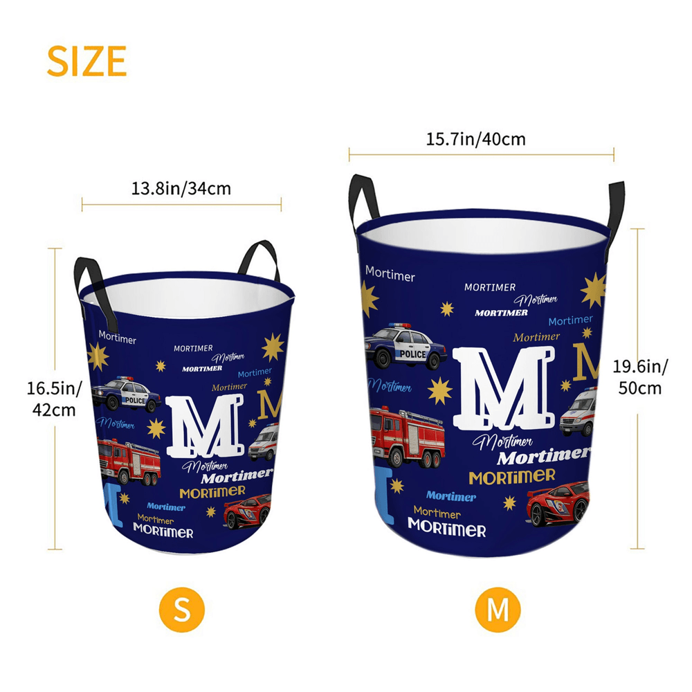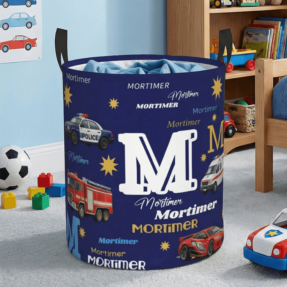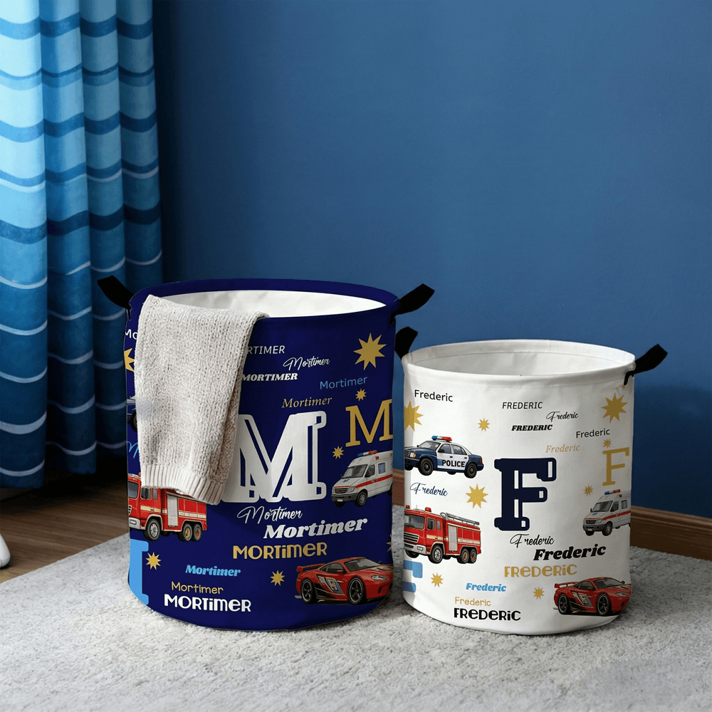 Questo vivace cestino portaoggetti presenta un'adorabile collezione di auto di emergenza e da corsa in stile cartoon, tra cui auto della polizia, camion dei pompieri, ambulanze e auto da corsa, stampate su un ricco sfondo. Il design è completamente personalizzabile con il nome di battesimo del vostro piccolo, visualizzato in modo evidente in diverse varianti di caratteri eleganti insieme a grandi iniziali in grassetto. Il tema giocoso ma maschile celebra il suo amore per tutto ciò che è automobilistico, rendendolo un'affascinante soluzione decorativa unica nel suo genere che i bambini adoreranno.