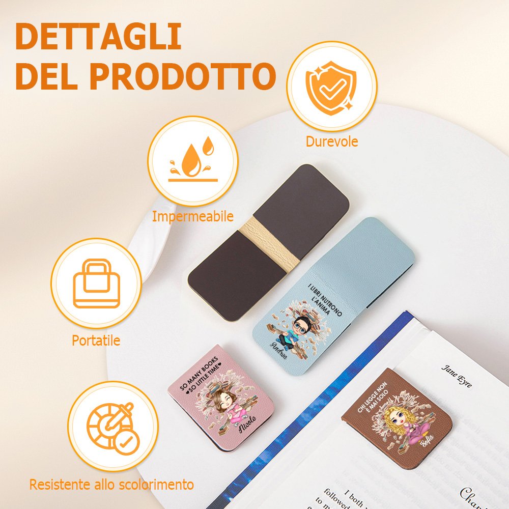 Questi segnalibri magnetici presentano personaggi in stile cartoon adorabili e dettagliati, disponibili in diversi colori per adattarsi a tutti i gusti. Puoi personalizzare nome e messaggio, trasformando ogni libro in un oggetto unico che racconta una storia speciale.