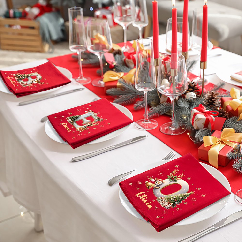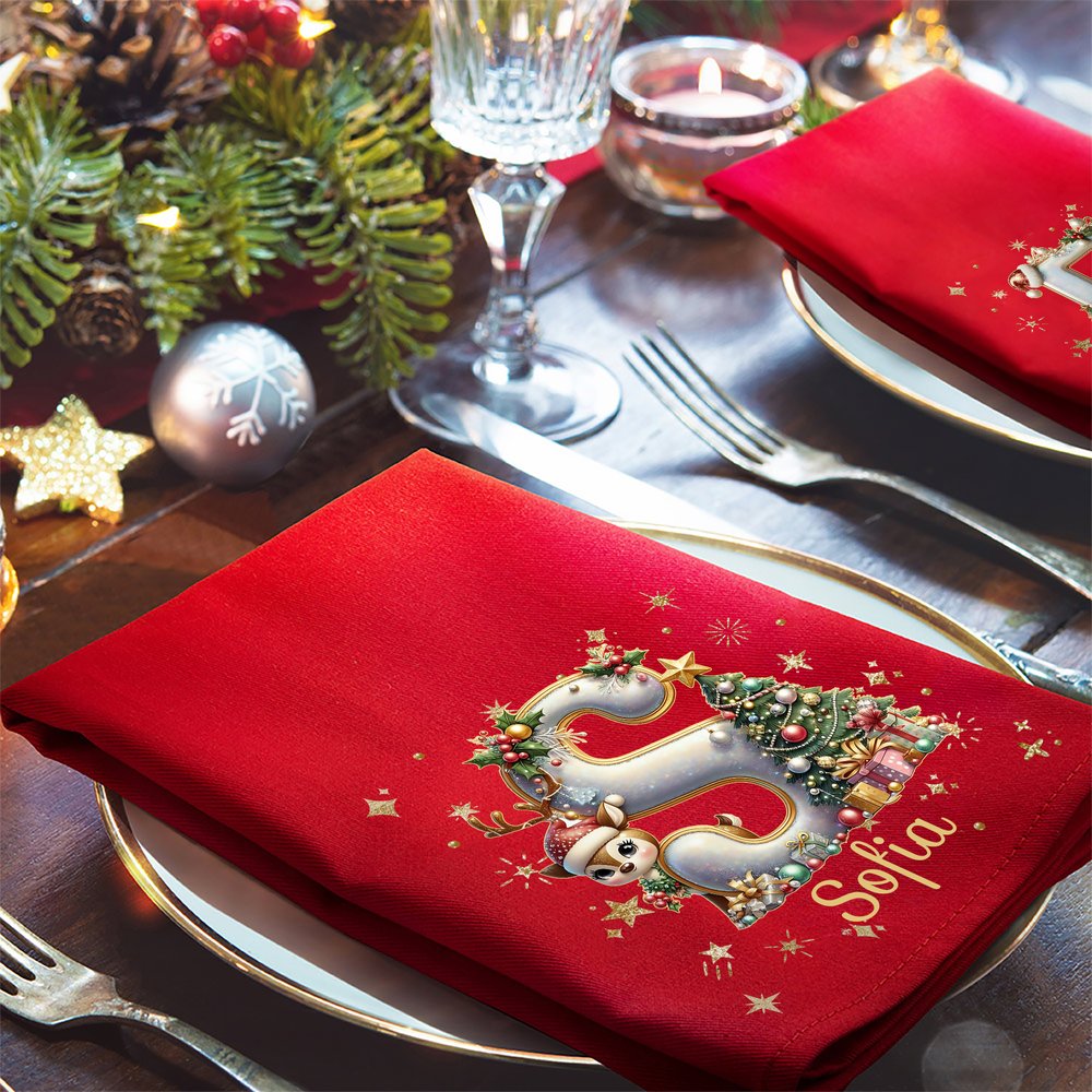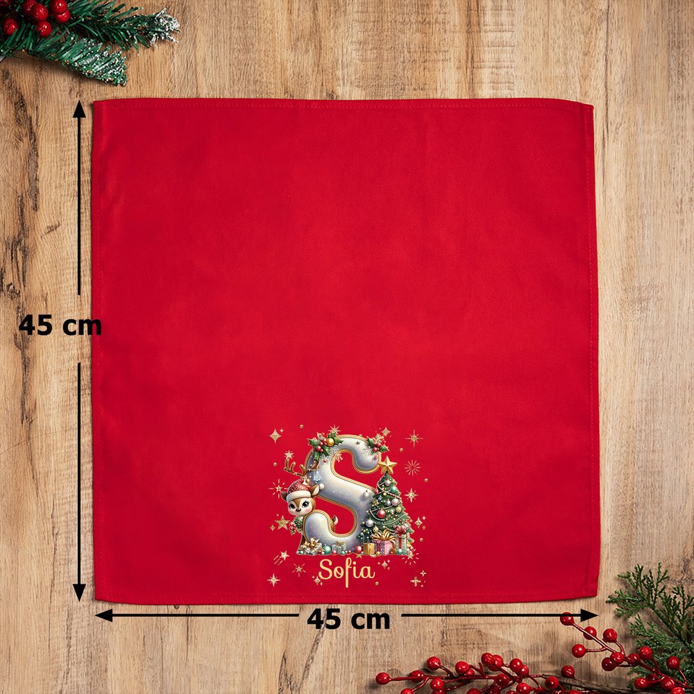 Queste morbide e simpatiche renne, abbinate a lettere e nomi personalizzati con un tocco natalizio, portano subito l'atmosfera festiva sulla tua tavola. L'ispirazione alle renne dei cartoni animati e gli elementi decorativi a tema Natale fanno di questo tovagliolo un pezzo unico che aggiunge magia alla cena. Non serviranno altre decorazioni: basta posizionarli sui piatti per trasformare ogni momento della cena in una scena fiabesca, regalando un fascino speciale alla tua tavola natalizia.