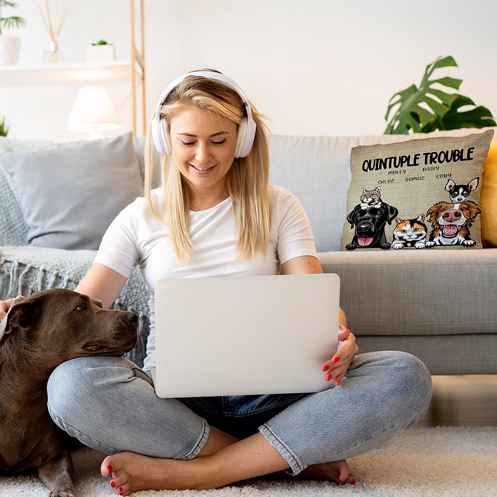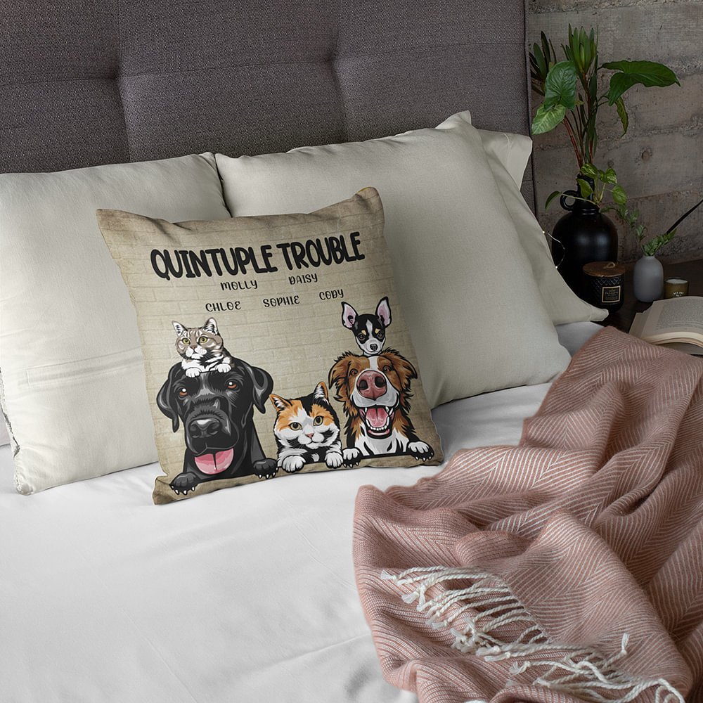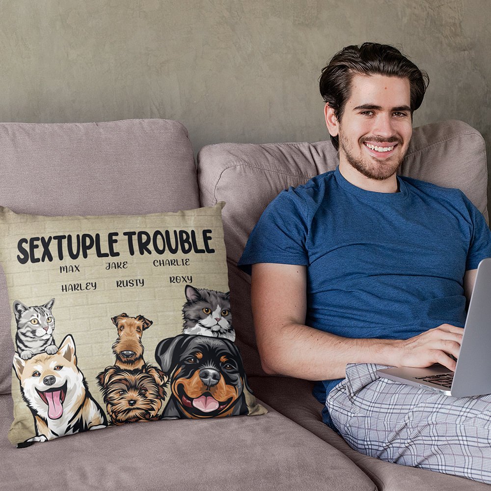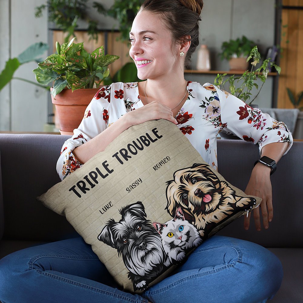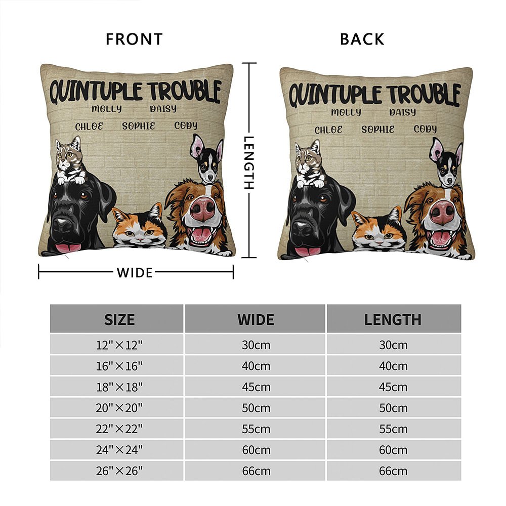 Questo copricuscino personalizzato per cani o gatti è il regalo perfetto per gli amanti degli animali. Grazie alla possibilità di personalizzare le razze e i nomi di 1-6 animali domestici, è possibile creare un cuscino a tema davvero unico.