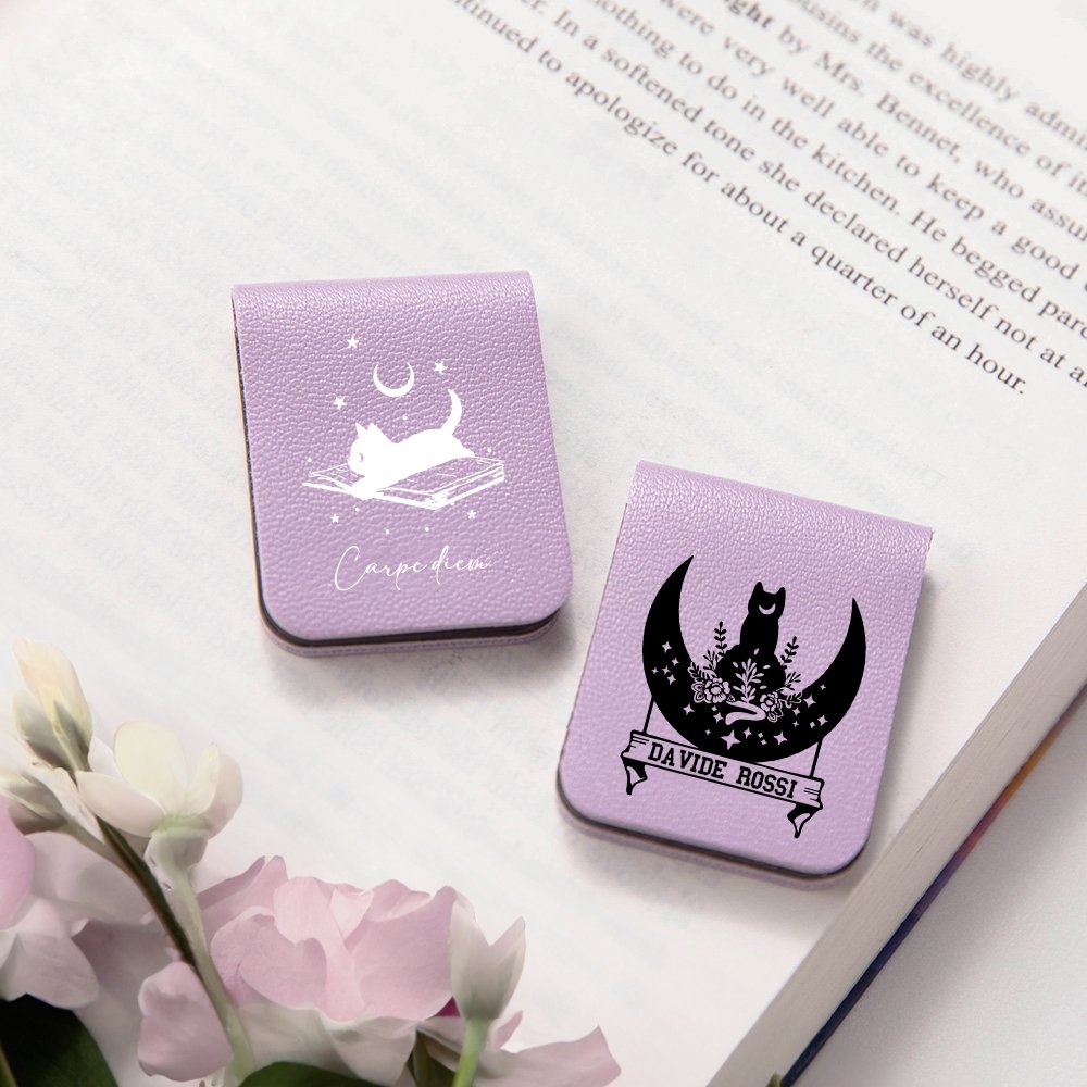 Questo segnalibro è dedicato ai gatti ed è disponibile in 18 stili diversi. Combina i gatti con elementi come cielo stellato, luna, libri e fiori, creando un effetto magico e ricco di atmosfera. Il nome personalizzato rende ogni segnalibro ancora più unico e personale.