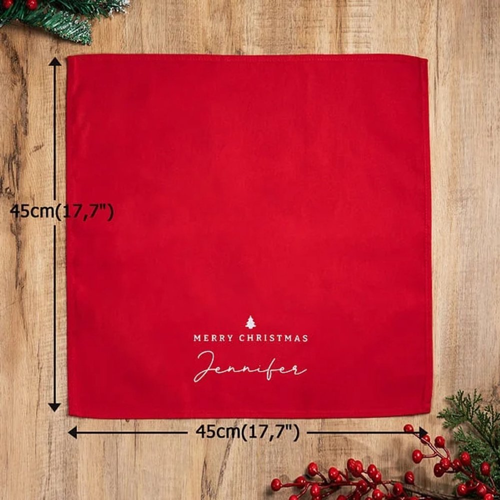 Questi tovaglioli sono perfetti per asciugare le fuoriuscite o come decorazione per la tua tavola. Ogni tovagliolo è impreziosito dalla scritta "Merry Christmas" (Buon Natale). Puoi aggiungere un tocco personale con i nomi della tua famiglia o dei singoli membri, accompagnati da icone a tema natalizio. Realizzati in 100% cotone puro, questi tovaglioli festosi sono l'accessorio ideale per i tuoi incontri natalizi.