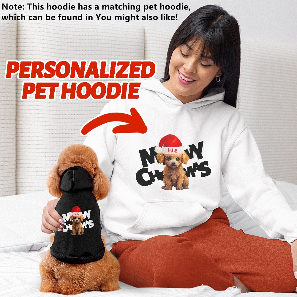 Ciò che distingue questa felpa con cappuccio è il tocco personalizzato che offre. Ogni felpa è dotata di un nome personalizzato per il vostro amato animale domestico. Basta scegliere il nome del vostro animale e noi lo stamperemo su un simpatico e festoso cappello natalizio che si trova in cima al cappuccio. Ora potrete mostrare con orgoglio il nome del vostro amico peloso ovunque andiate!