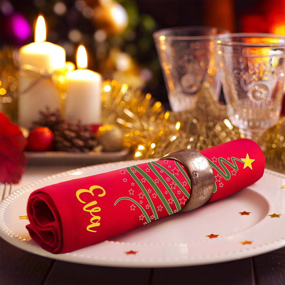 Aggiungi un tocco di festa unico alla tua cucina con questi squisiti tovaglioli natalizi personalizzati con iniziali! Decorati con elementi classici come l’albero di Natale, uniscono eleganza e spirito festivo, integrandosi perfettamente con l’arredamento natalizio. Personalizzabili con il tuo nome, renderanno ogni tavola e ogni regalo davvero speciale.