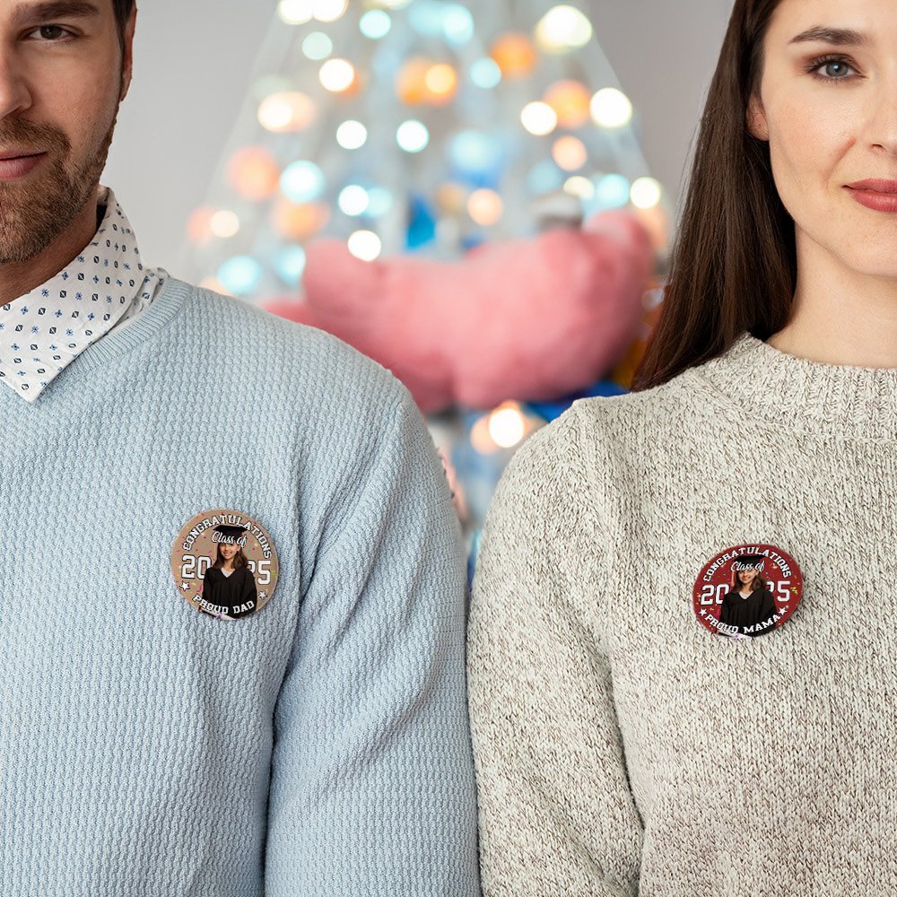 Commemorate l'importante traguardo della laurea con queste esclusive spille a bottone con foto. Completamente personalizzabili, possono contenere la foto del laureato, l'anno di laurea e un testo personalizzato, che li rende un prezioso ricordo da conservare per gli anni a venire.