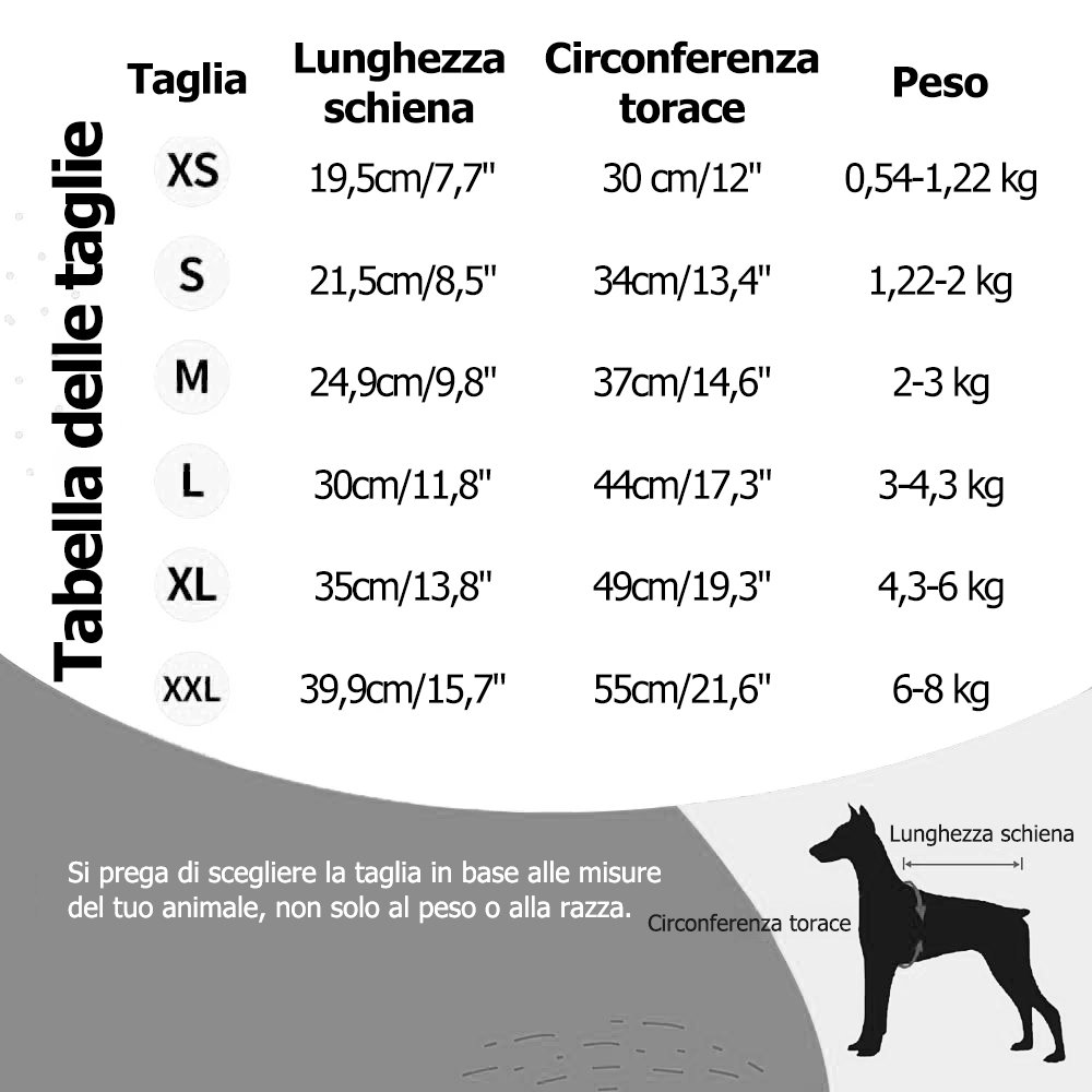 Disponibile in diverse taglie per cani, gatti e altri animali domestici, per garantire che ogni amico peloso possa godere di un look elegante e di un comfort ottimale.