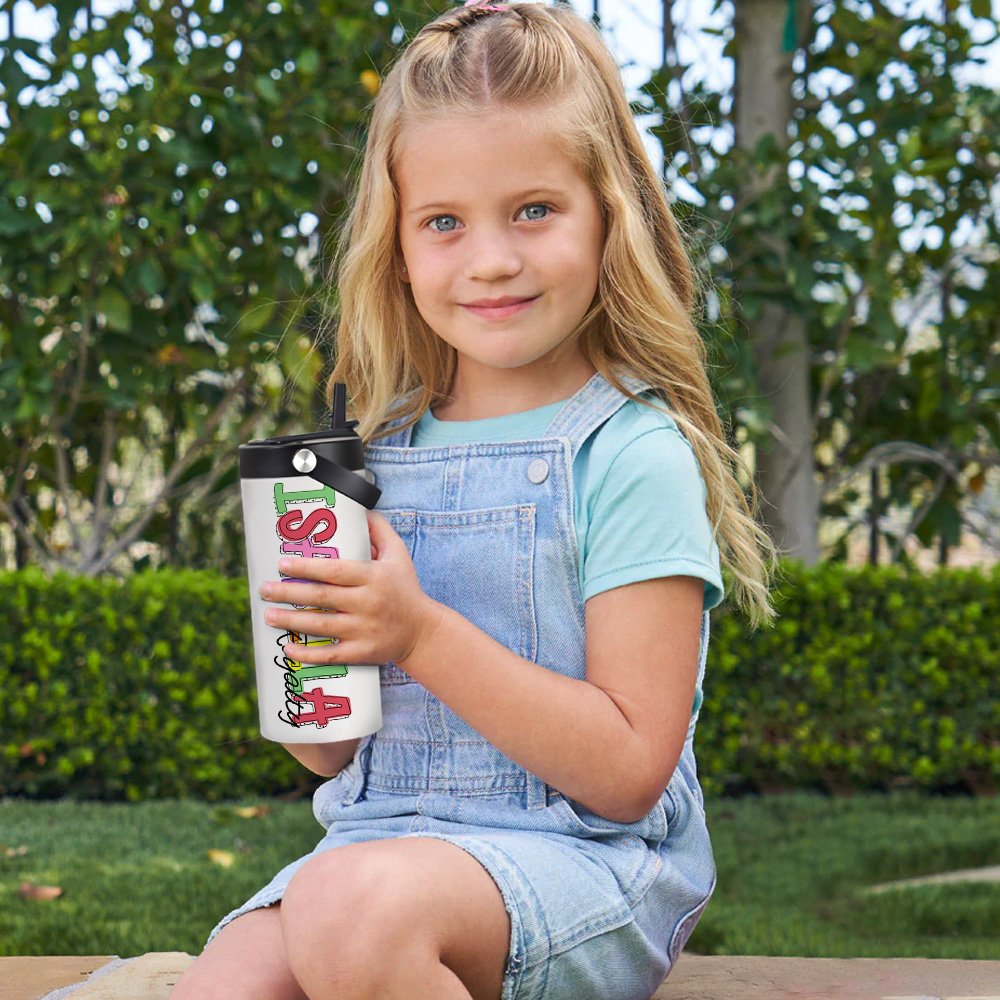 Realizzata in acciaio inossidabile di alta qualità e materiali per uso alimentare, è sicura e salutare da bere. Robusta e durevole, l'imboccatura della tazza adotta un design a cannuccia, a tenuta e a prova di perdite. Il design del fondo ispessito rende la tazza d'acqua più resistente alle cadute e all'usura. Inoltre, è leggera e le sue 15 once la rendono facile da tenere in mano per le mani più piccole!