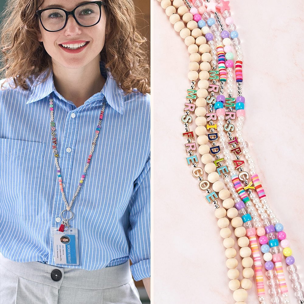 Questo cordino presenta due stili di perline alla moda: perline colorate e brillanti e perline di legno semplici ed eleganti. Personalizzatelo con il vostro nome per soddisfare i vostri gusti e mostrare il vostro orgoglio di insegnanti. Inoltre, è possibile scegliere tra portacartellini orizzontali o verticali per garantire stile e praticità.
