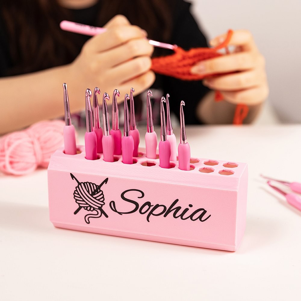 Se siete alla ricerca di un modo elegante e pratico per organizzare i vostri ganci da uncinetto, questa scatola per uncinetto è un'ottima scelta. La scatola può essere personalizzata con un motivo e il vostro nome, per aggiungere unicità. Il fronte e il retro della scatola sono di colori diversi, in modo da poter scegliere una combinazione di colori che si adatti al vostro stile o all'arredamento del vostro studio.