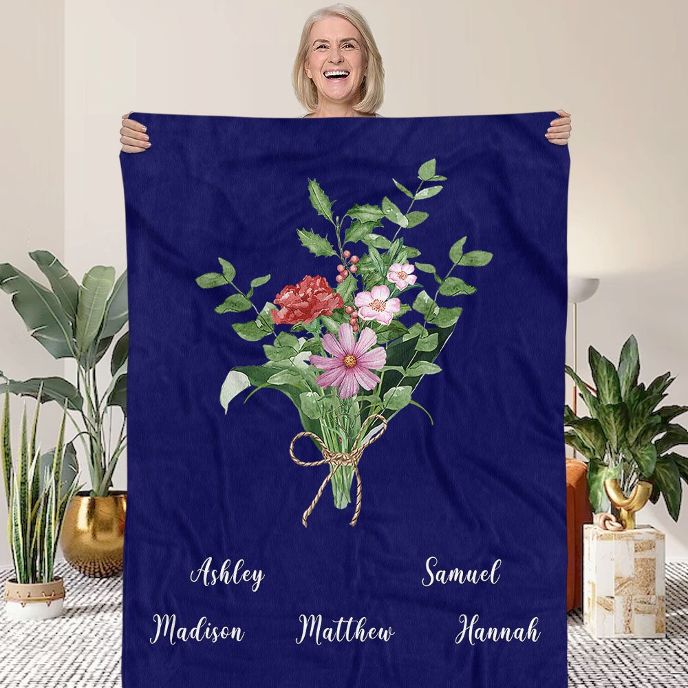 In addition to the choice of birth flowers, we can customize this blanket with your and your family members' names, making it a truly warm and meaningful keepsake just for you!