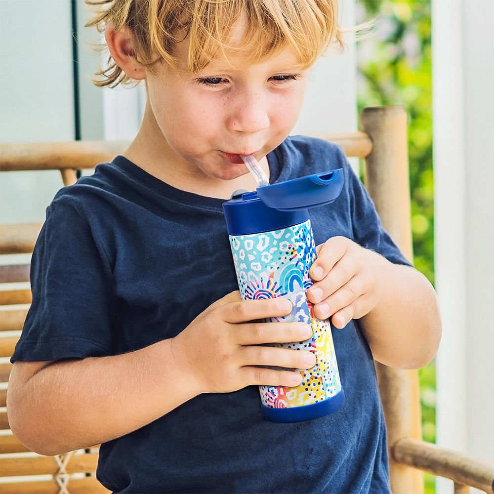 Con un divertente motivo a pois colorati e uno sfondo arcobaleno stampato sulla superficie, questa borraccia da 12 oz è piena di divertimento infantile, e la combinazione di colori vivaci la fa risaltare dalla folla di borracce per bambini.