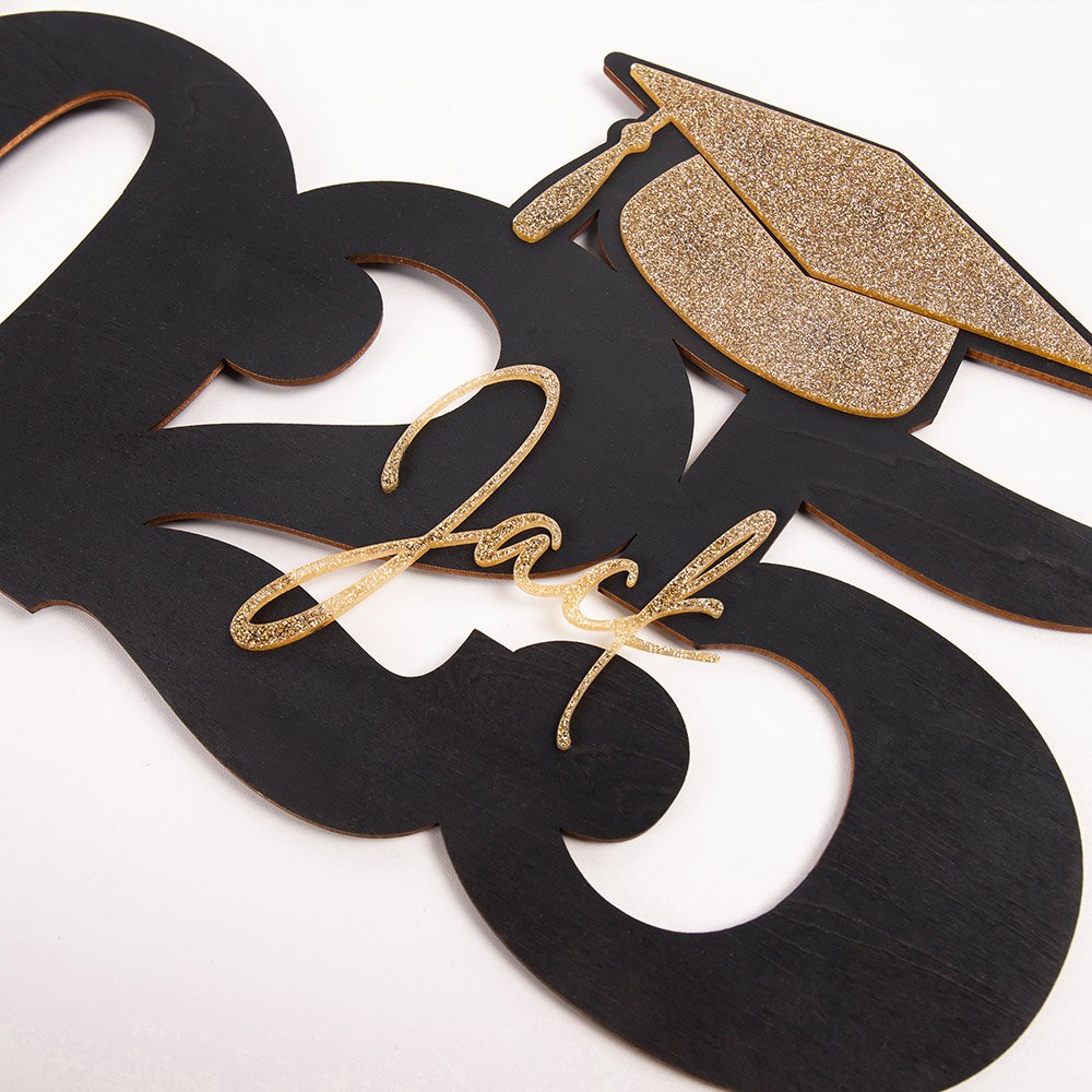 Le nostre decorazioni personalizzate per la laurea sono realizzate con materiali di alta qualità destinati a durare nel tempo. Le lettere di un nome personalizzato con colori glitterati aggiungono un tocco di stile all'arredamento della festa. Il materiale in legno è robusto e stabile, per garantire che il vostro oggetto fotografico rimanga al suo posto per tutta la durata della festa.