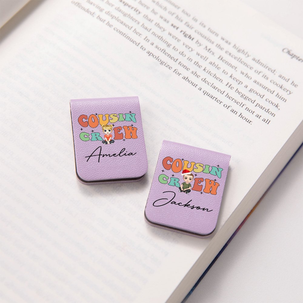 Questo segnalibro presenta l'accattivante scritta "Cousin Crew" abbinata a personaggi dei cartoni animati colorati e vivaci. Ogni personaggio dei cartoni animati è vivace e simpatico, pieno di un'atmosfera festosa. È inoltre possibile personalizzare il nome del segnalibro per renderlo più memorabile.