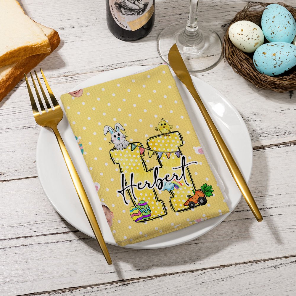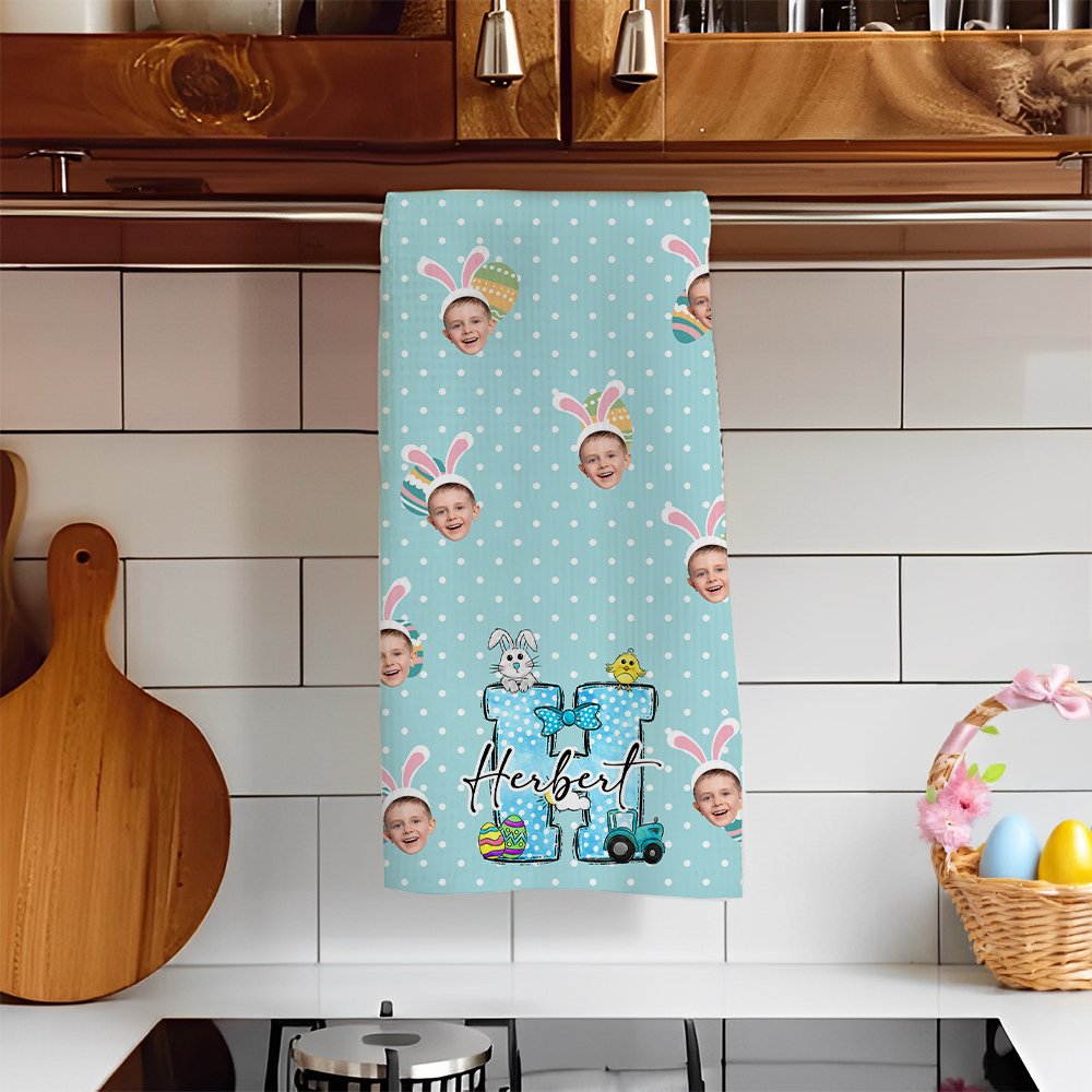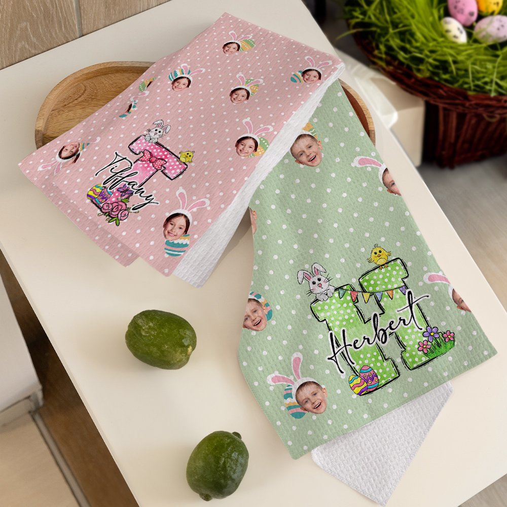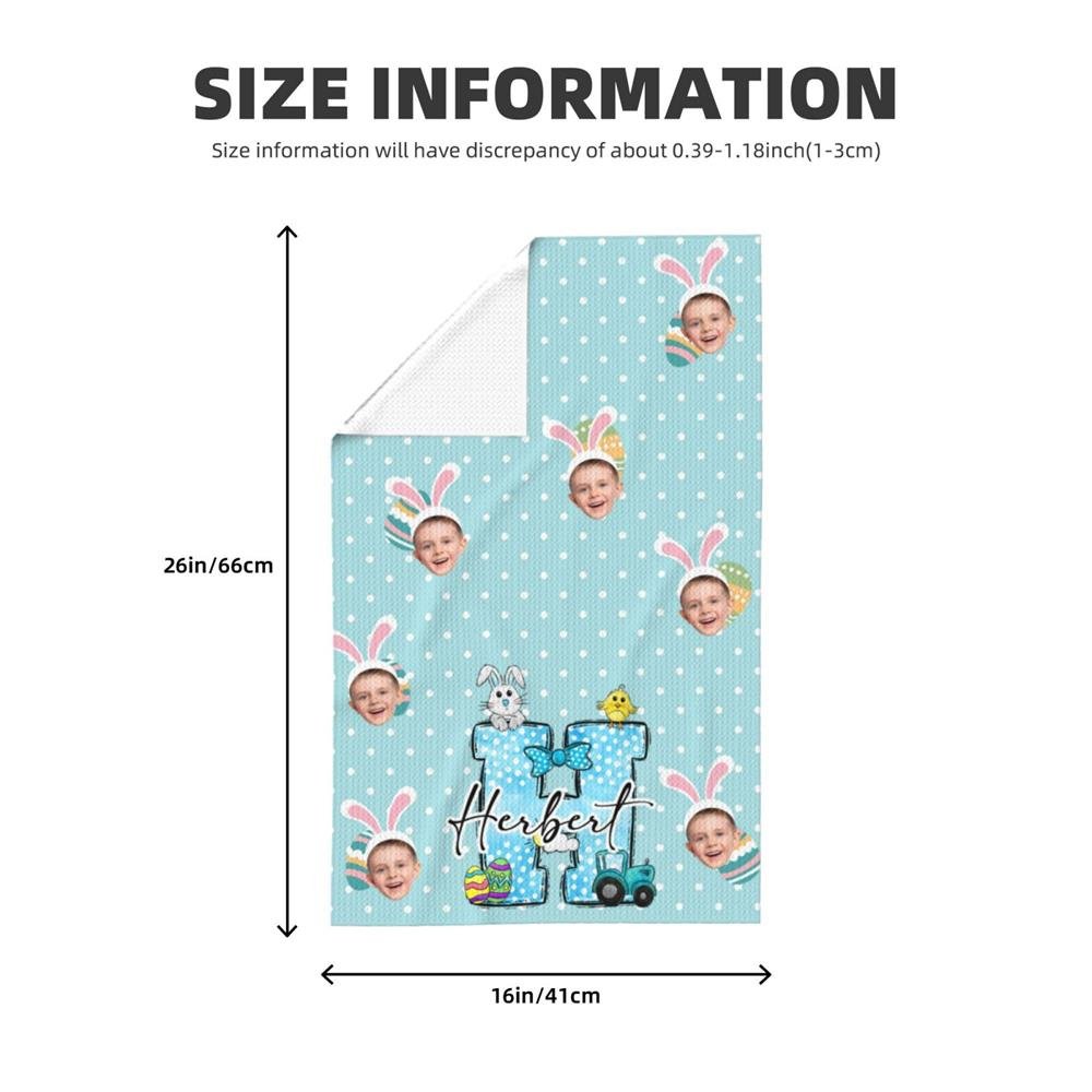 Questo strofinaccio si ispira al gioioso tema della Pasqua e combina abilmente il design giocoso delle orecchie del coniglietto con pois colorati e luminosi, fiocchi, uova e altri motivi per creare un'atmosfera calda e infantile di festa. Supporta in modo particolare la personalizzazione. Non solo è possibile aggiungere il proprio nome e le iniziali, ma è anche possibile caricare le foto di 1-3 volti per rendere lo strofinaccio un souvenir unico.