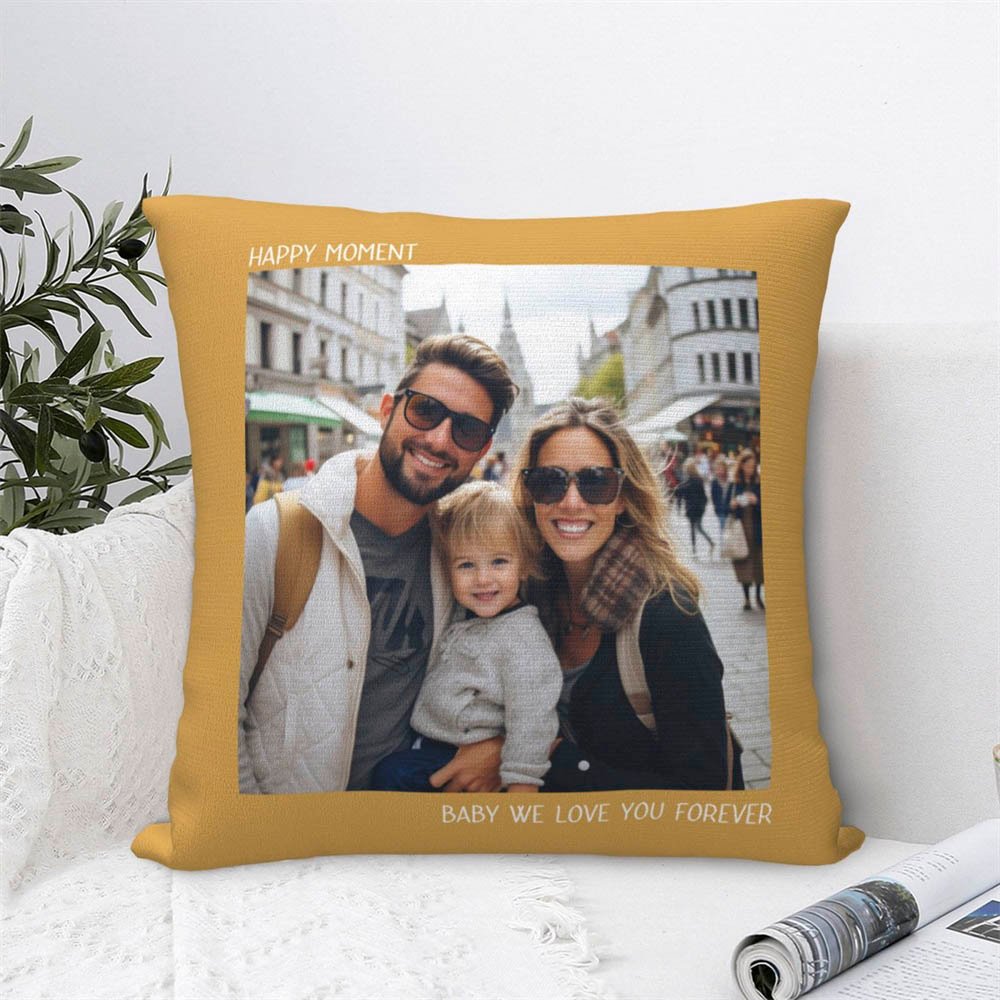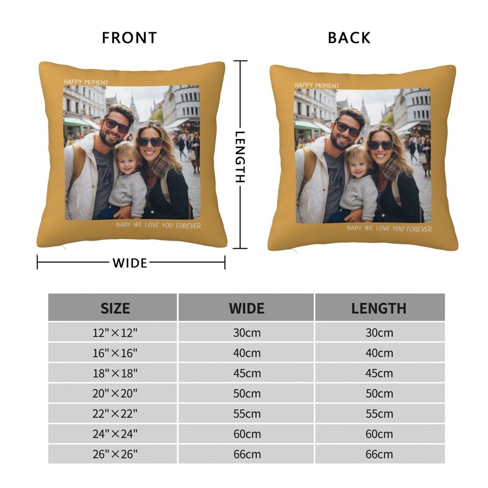 I nostri copricuscini sono realizzati in tessuto di alta qualità e presentano un design vivace e colorato. La stampa personalizzata assicura che la foto e il testo siano chiari e nitidi, aggiungendo un tocco personale a qualsiasi stanza o spazio.