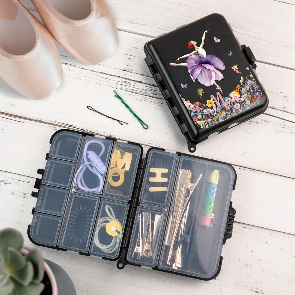 La parte anteriore di questo organizzatore presenta una ballerina, con un fiore di nascita che forma l'orlo della gonna, circondata da farfalle e fiori, per un look accattivante. Allo stesso tempo, puoi personalizzarlo con il nome, rendendolo un tuo articolo unico.