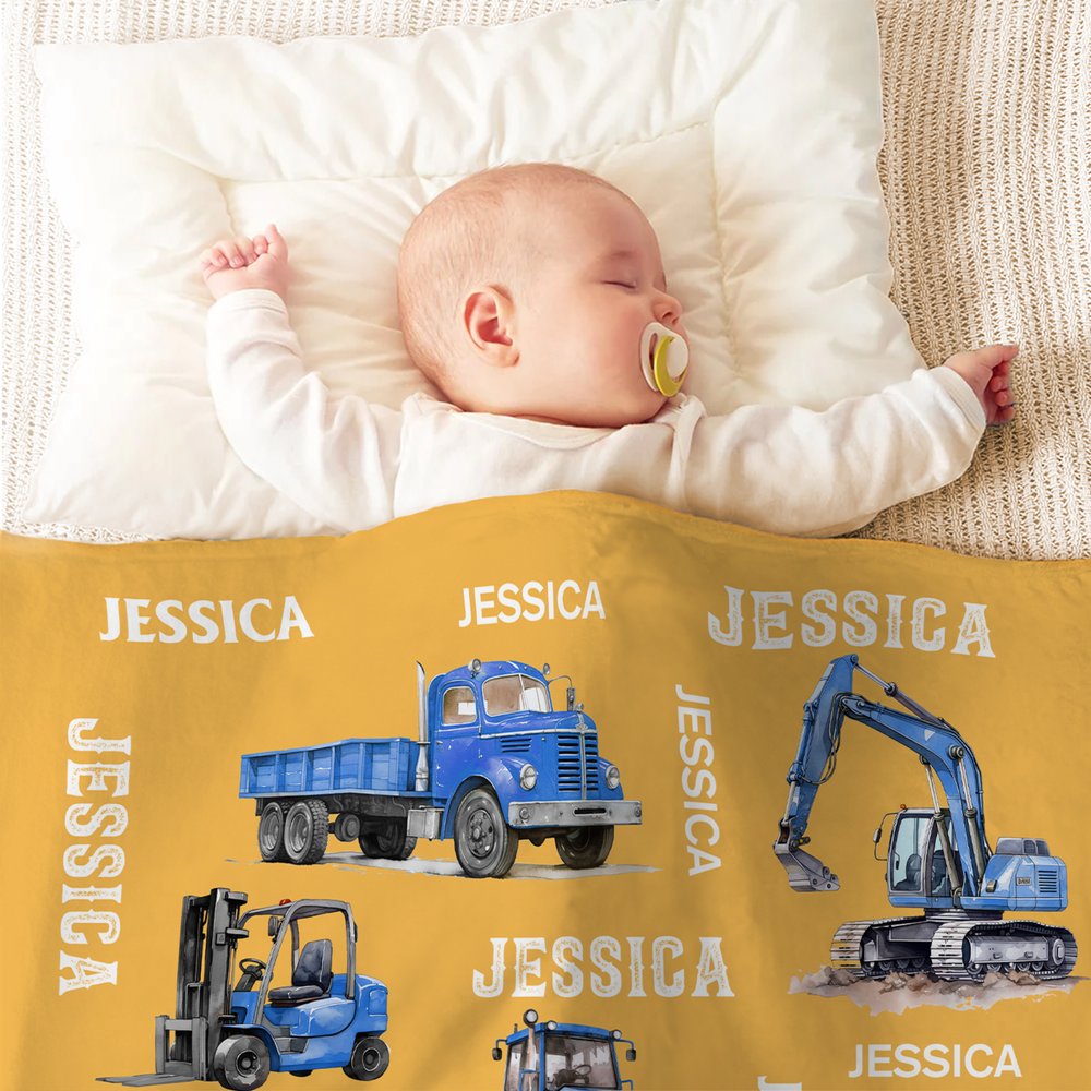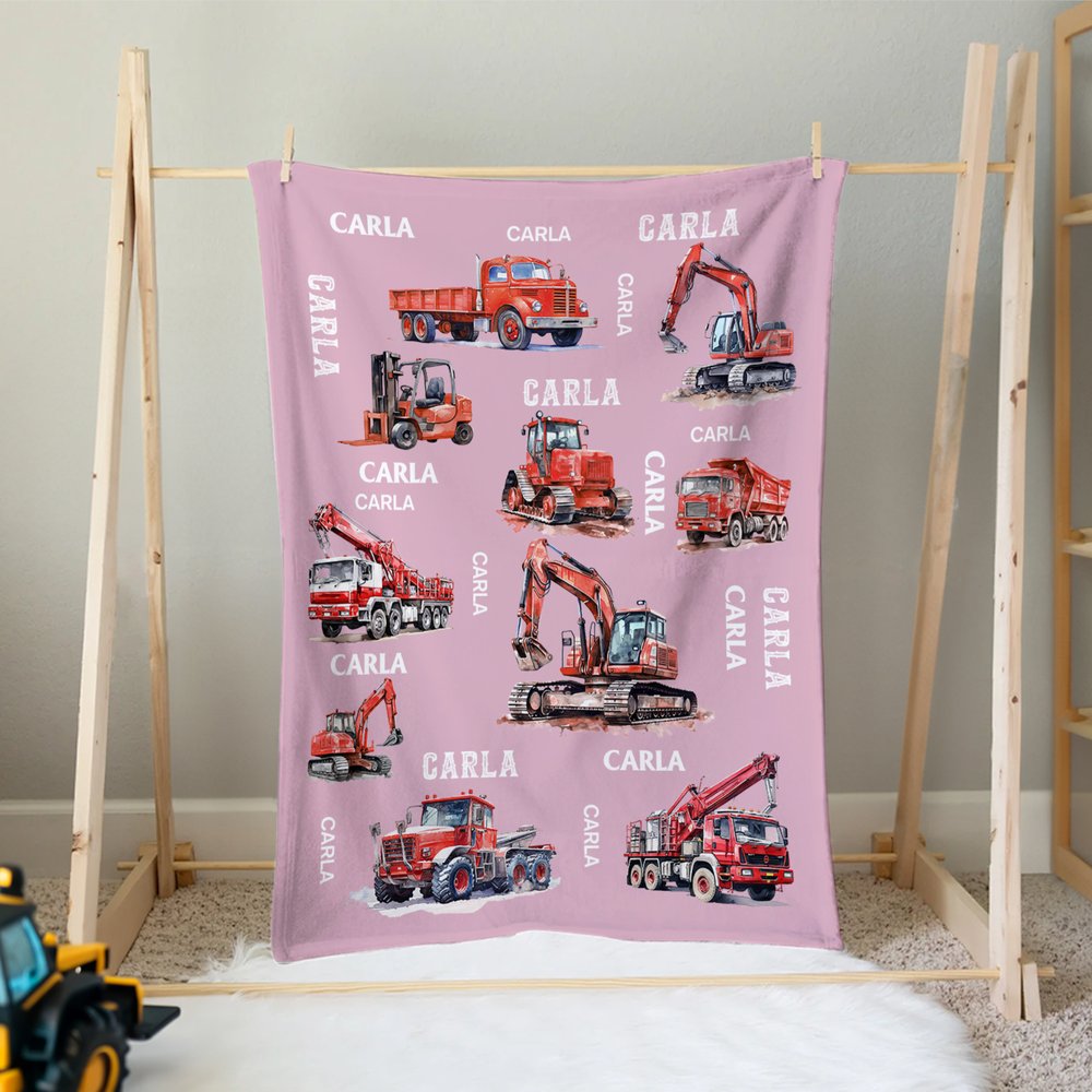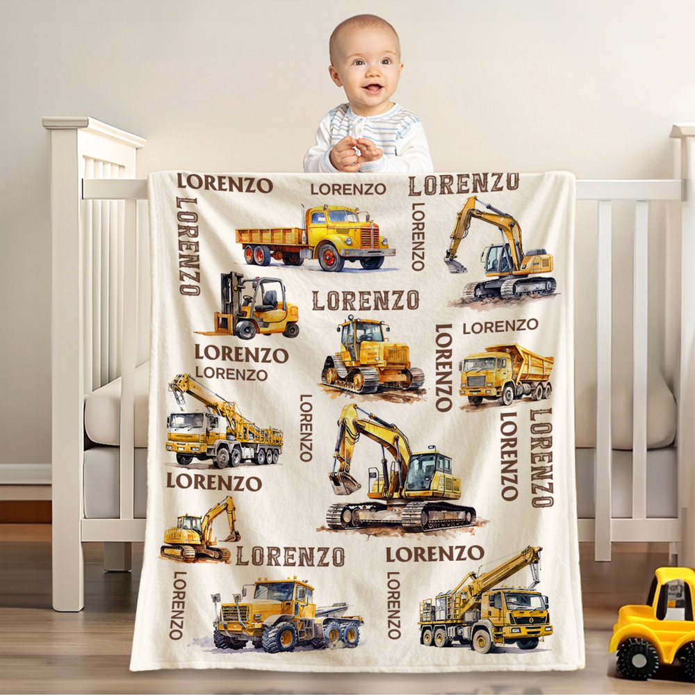 Coperta personalizzata con nome tema veicolo da costruzione regalo ideale per appassionati di mezzi da cantiere