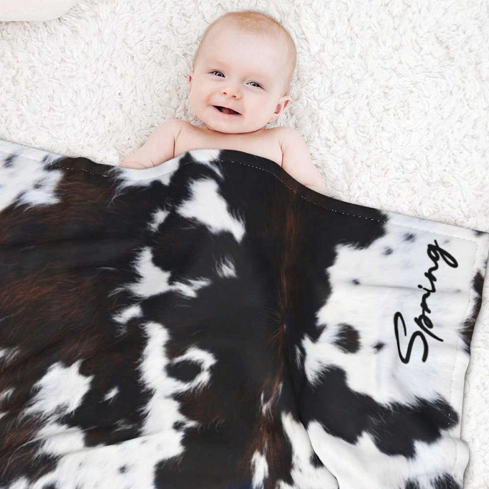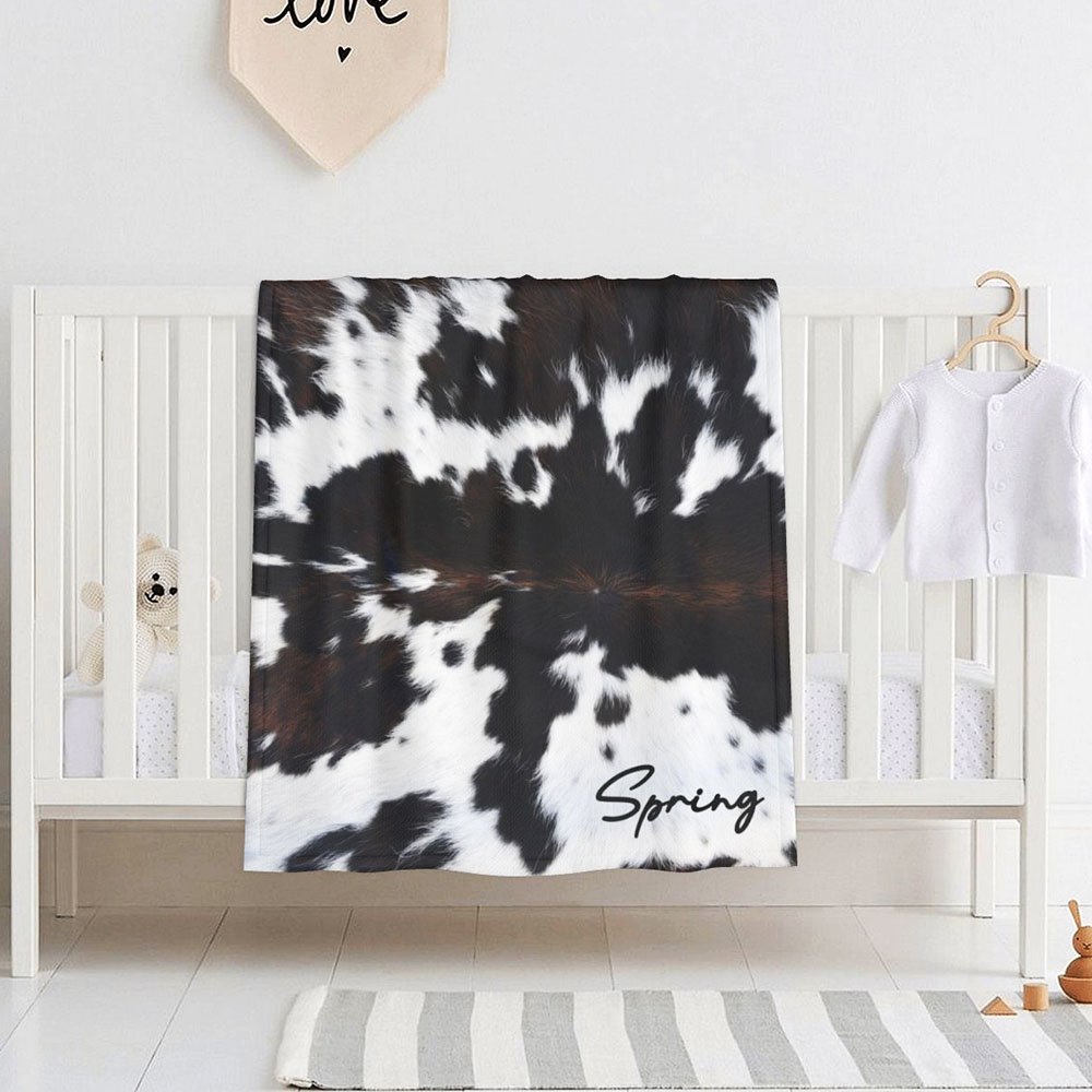 La morbida e confortevole coperta per bambini ha una stampa di pelliccia di mucca, il cui design aggiunge un tocco di incanto decorativo alla tua stanza.