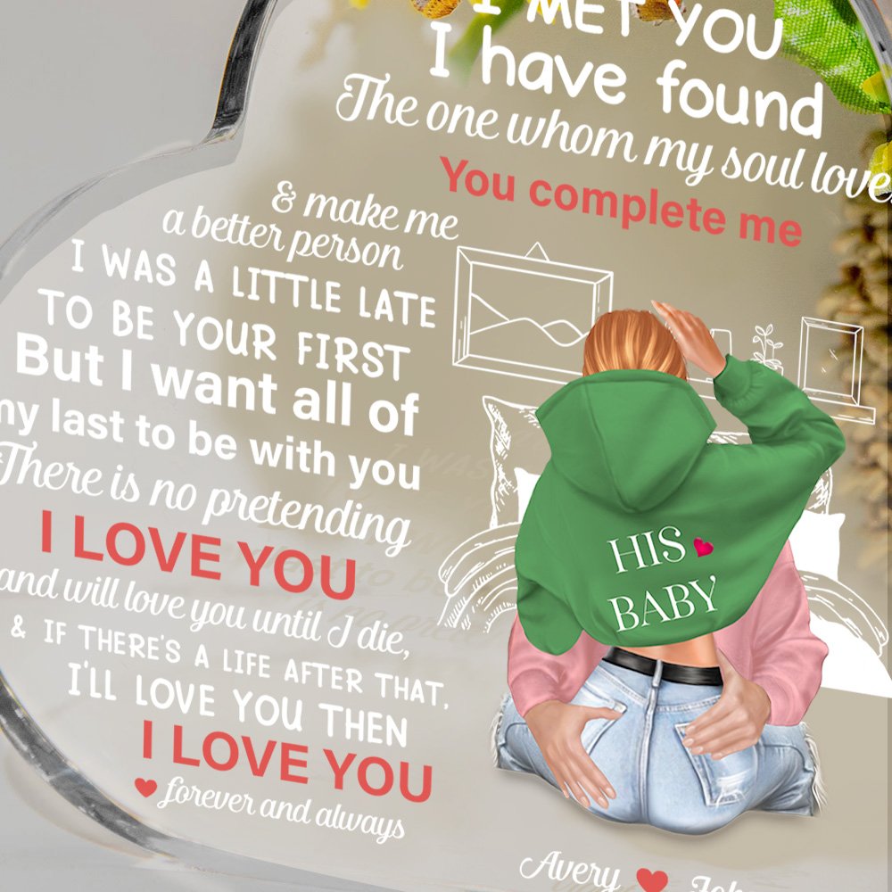 Questa targa serve a ricordare costantemente il vostro legame, creando un'atmosfera calda e affettuosa. Il testo "Tu mi completi", i caratteri unici e i vostri nomi evocheranno calde emozioni e favoriranno un'atmosfera affettuosa in qualsiasi stanza.