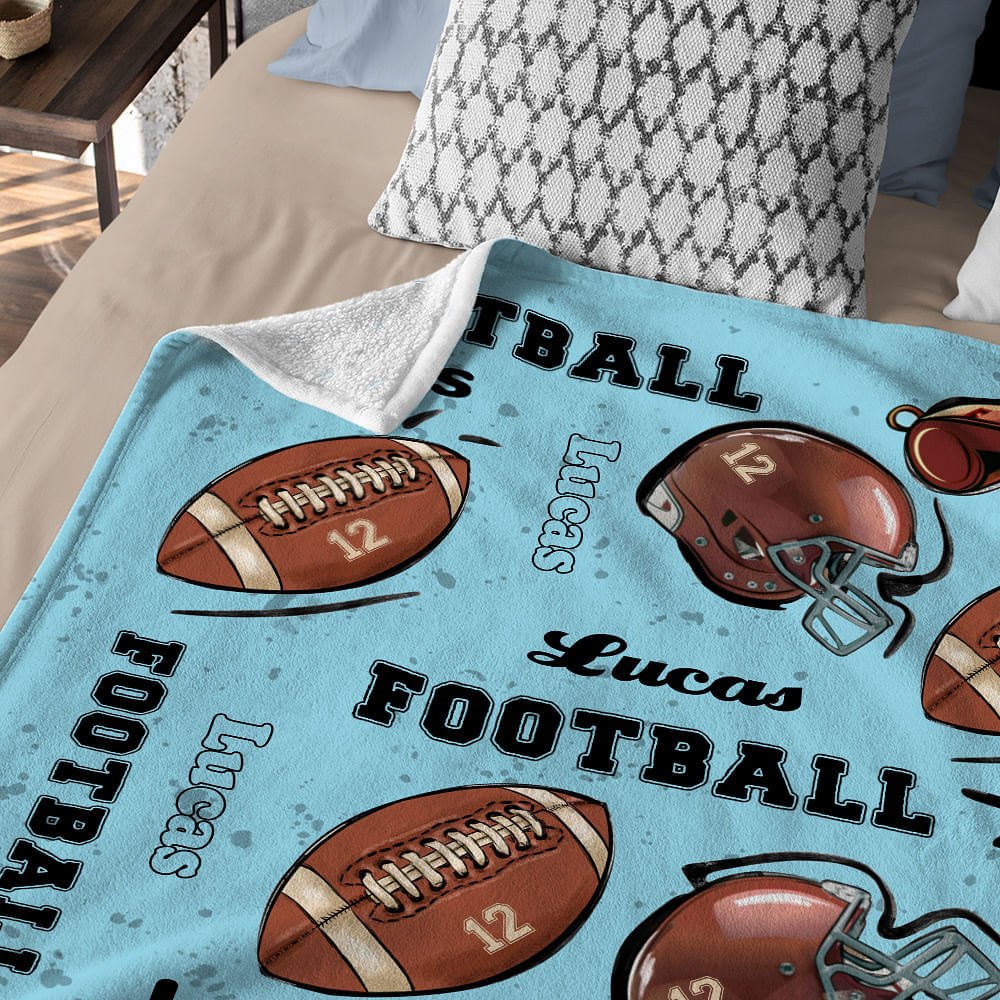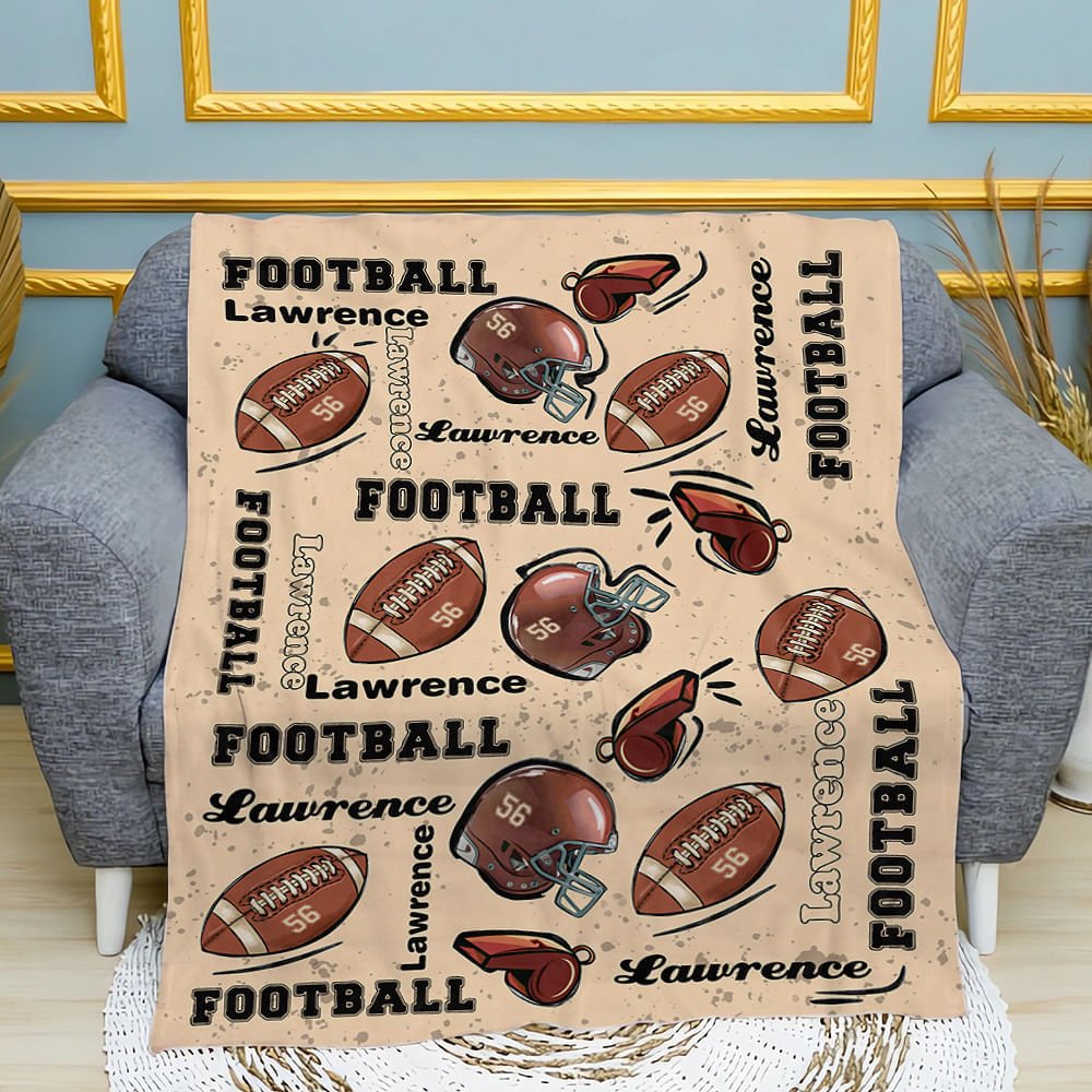 Questa morbida coperta in peluche è caratterizzata da un disegno con elementi di calcio e può essere personalizzata con il nome del destinatario e il numero della squadra preferita, rendendola un regalo davvero unico e premuroso per l'appassionato di sport della vostra vita.