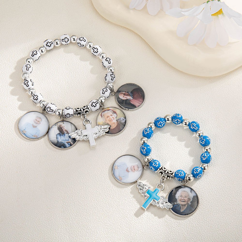 Questo braccialetto è un regalo premuroso e commovente per chiunque abbia a cuore le proprie convinzioni religiose. Presenta un elemento a croce abbinato al design del bracciale, con l'opzione di un ciondolo a forma di croce e può essere personalizzato con una foto per renderlo ancora più speciale.