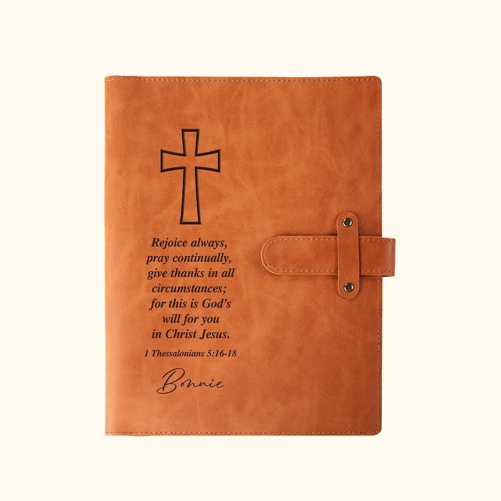 Croce personalizzata Rejoice Always Name Copertina del taccuino A5 Sketchbook in pelle con tasca portaoggetti Regalo di Natale per cristiani