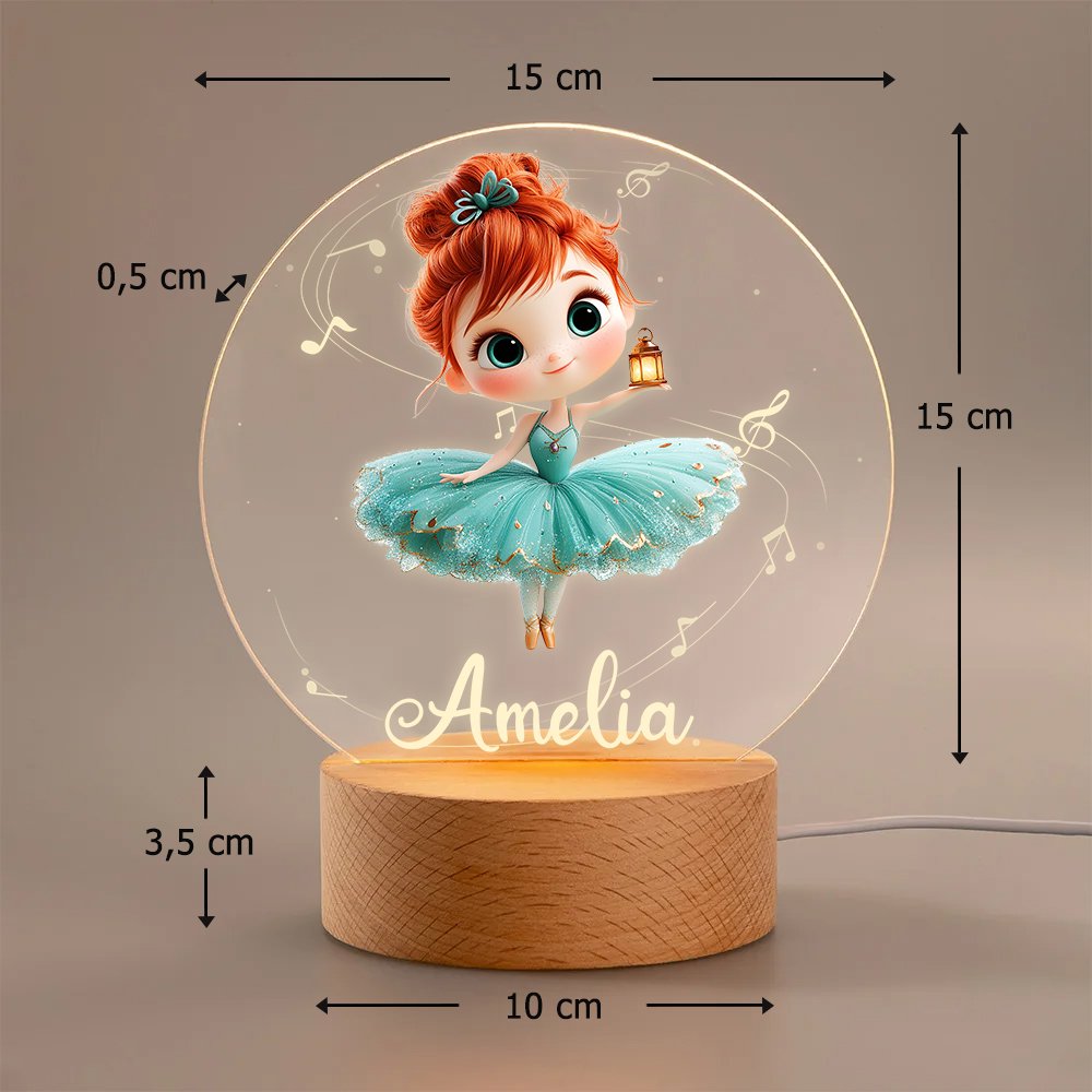 Questa luce notturna riprende l’elegante posa di una ballerina in 3D, arricchita da note musicali su pentagramma, vivaci, graziose e piene di innocenza. Grazie alla tecnologia di stampa avanzata, le linee del disegno sono precise e l’immagine è ben definita. Supporta la personalizzazione del nome, rendendo ogni lampada unica e speciale, con un tocco esclusivo e ricco di significato.