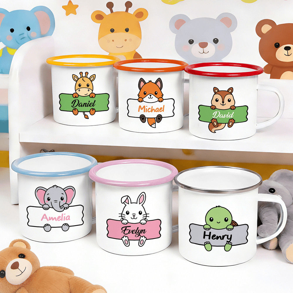Questa tazza smaltata a tema animale offre una varietà di disegni di animali tra cui scegliere e può essere personalizzata con un nome. Caratterizzata da un design creativo con bordi ondulati, il suo aspetto vivace e adorabile rende ogni tazza unica.