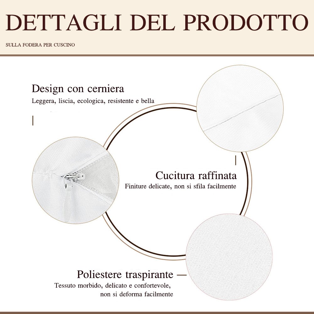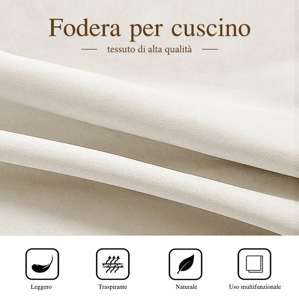 La fodera per cuscino è realizzata in morbido poliestere, delicato al tatto. La sua texture soffice aumenta il comfort generale e offre una sensazione piacevole quando ti rilassi. Il design con cerniera nascosta garantisce un'apertura e chiusura liscia e senza intoppi. Inserire o rimuovere il cuscino è rapido e semplice, permettendoti di cambiare o pulire facilmente la fodera.