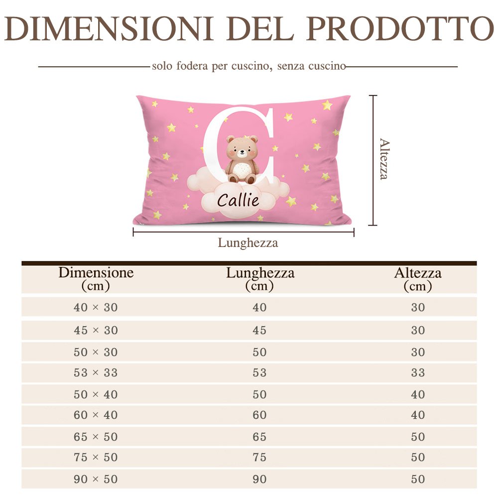 Scegli tra 43 adorabili motivi di animali, tra cui orsi, giraffe e leoni, per catturare l'immaginazione del tuo bambino. Abbinali allo sfondo incantevole di nuvole e stelle per creare un'atmosfera da sogno. Puoi personalizzare la fodera con il nome del bambino e ci sono 21 colori tra cui scegliere, rendendola un regalo unico e affascinante per neonati, bambine e bambini.