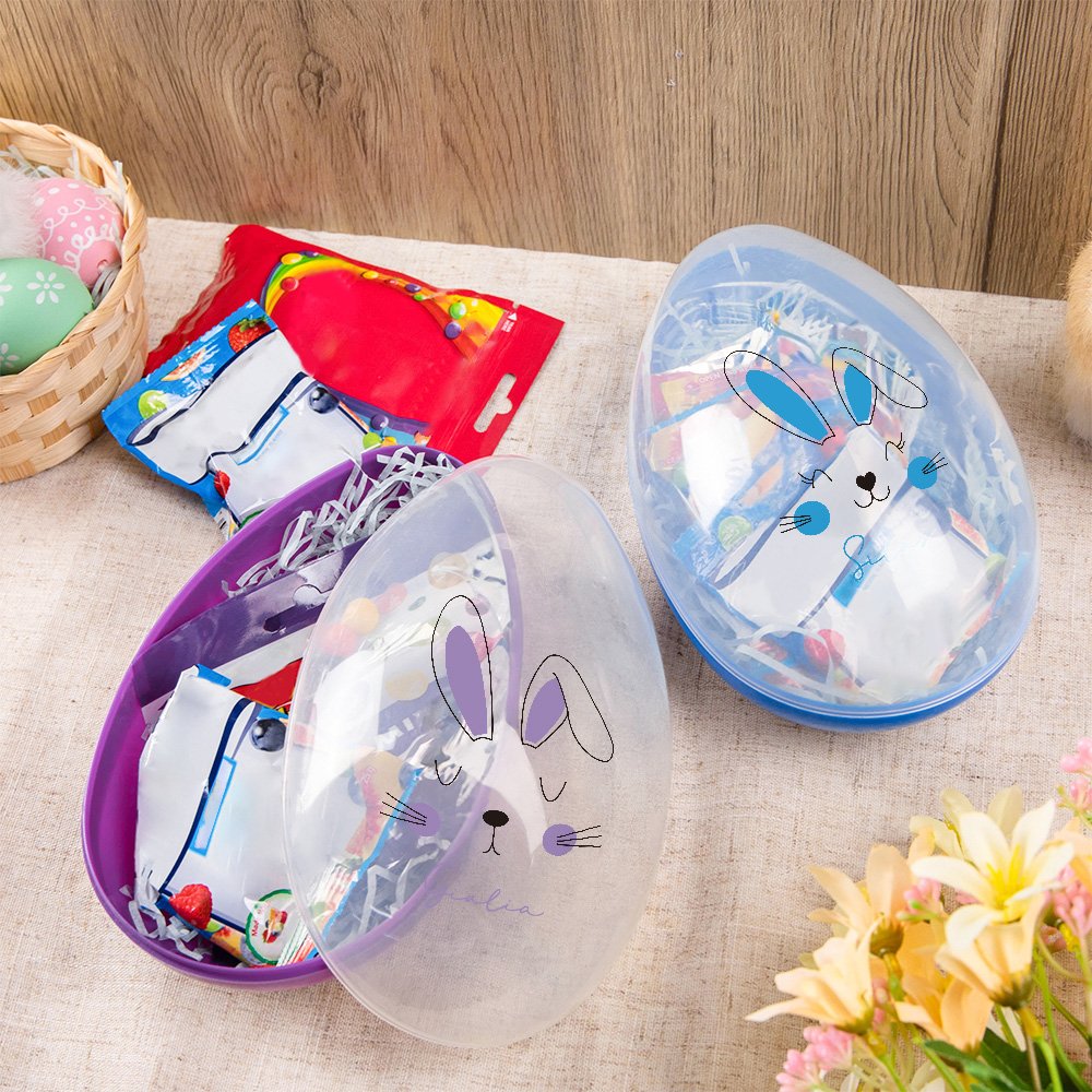 Questo uovo di Pasqua grande trasmette allegria festiva e divertimento infantile. Sulla superficie troverai conigli adorabili con 3 espressioni diverse e 4 colori per ampliare le tue scelte. Potrai personalizzare l'uovo con un nome, rendendolo unico e speciale.