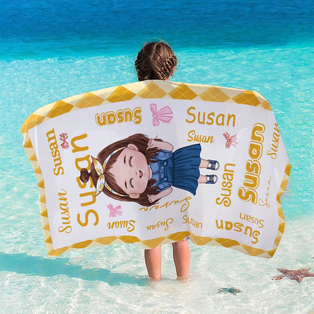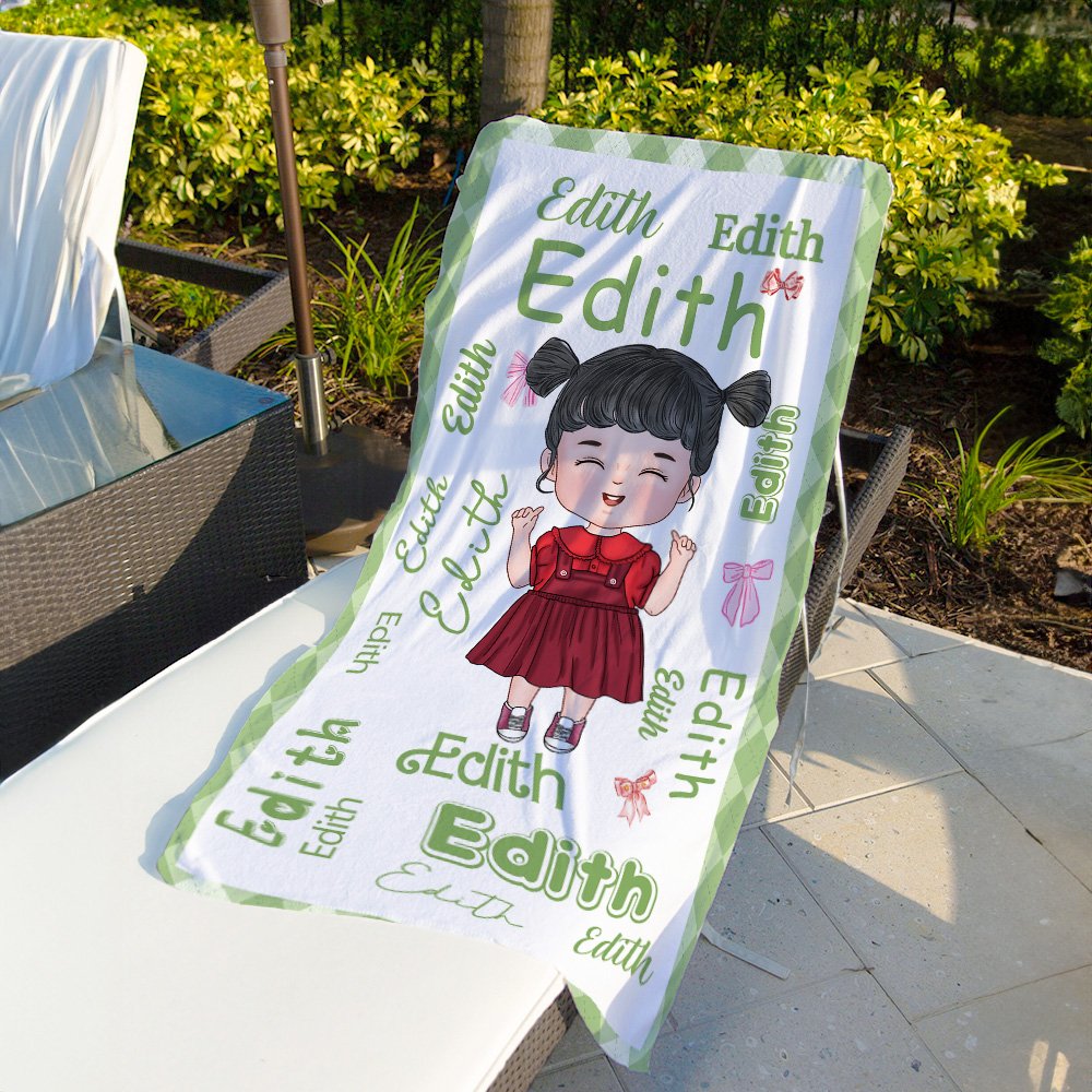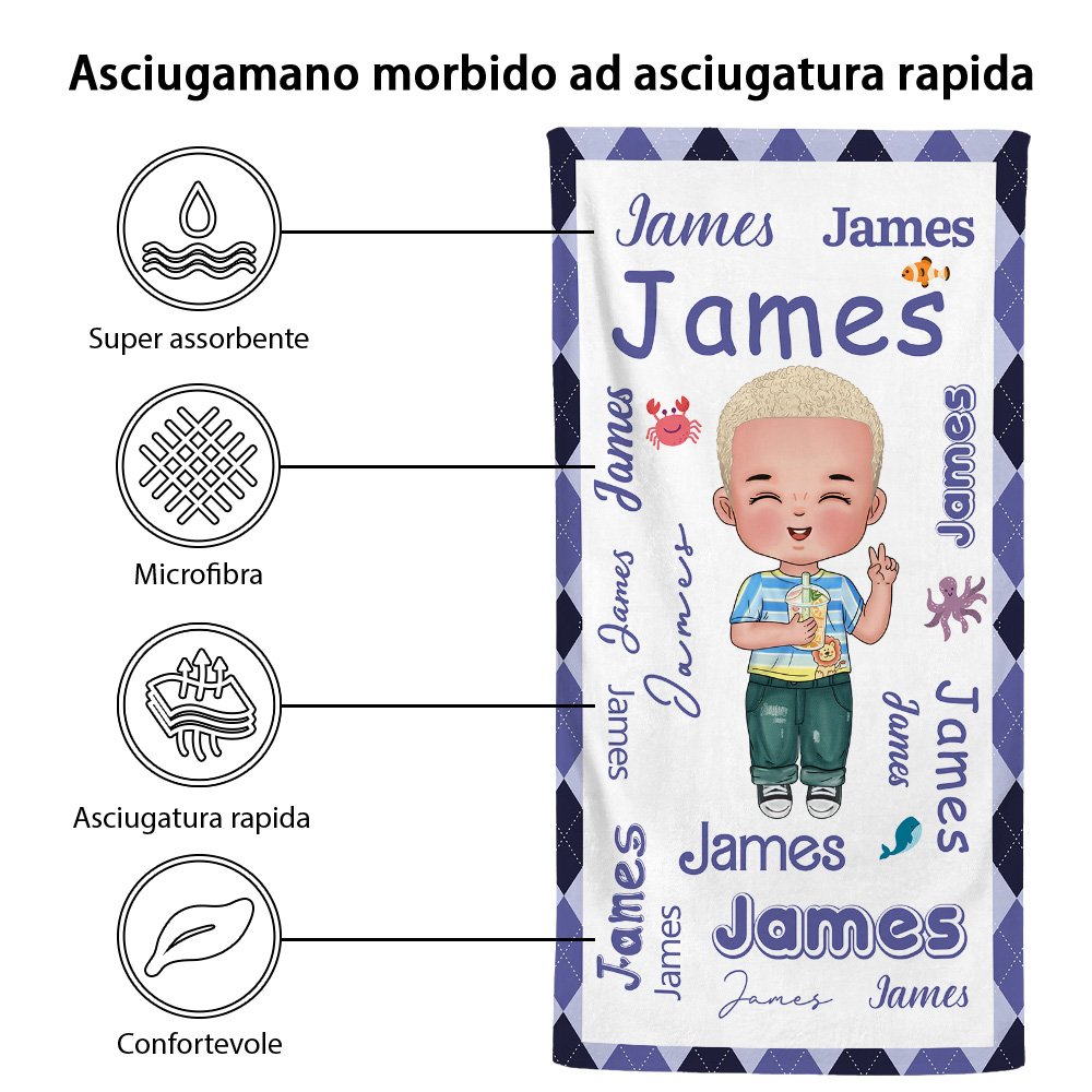 Questo telo da spiaggia è caratterizzato da una nuvola di parole e da un simpatico disegno di un personaggio dei cartoni animati. Gli utenti possono personalizzare il proprio sesso, l'acconciatura, il colore dei capelli, l'abbigliamento, il colore della pelle e degli occhi. Non solo è possibile scegliere tra 8 motivi a scacchiera a rombi, ma si può anche scegliere un motivo a fiocco o a vita marina, che è pieno di innocenza infantile e piacerà sicuramente ai vostri bambini.