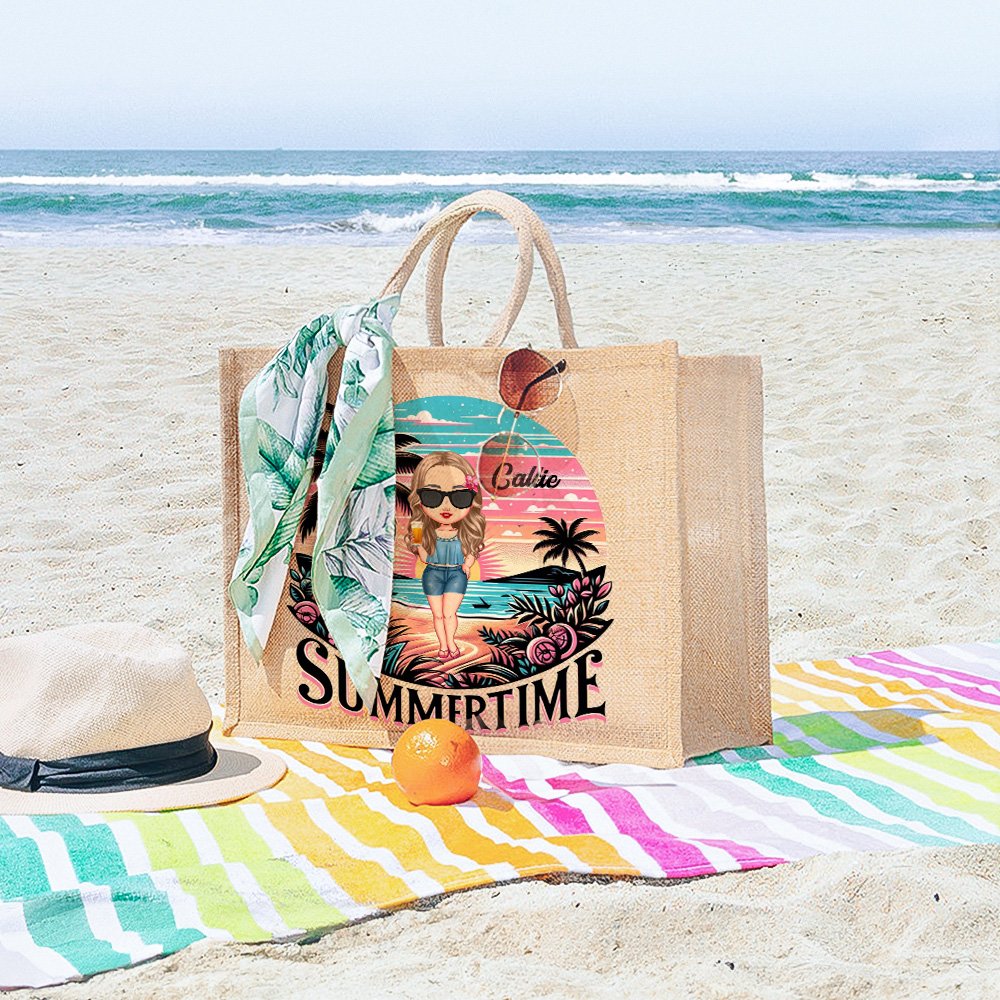 La borsa sfoggia un design da spiaggia al tramonto: vivi il bello dell’estate in modo fresco e informale. Puoi personalizzare il tuo personaggio preferito in stile cartone animato e aggiungere il tuo nome per esprimere il tuo stile unico e dare il benvenuto all’estate.