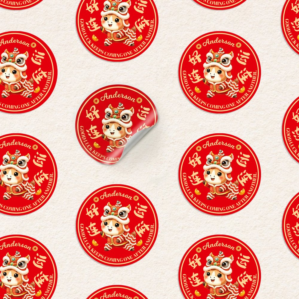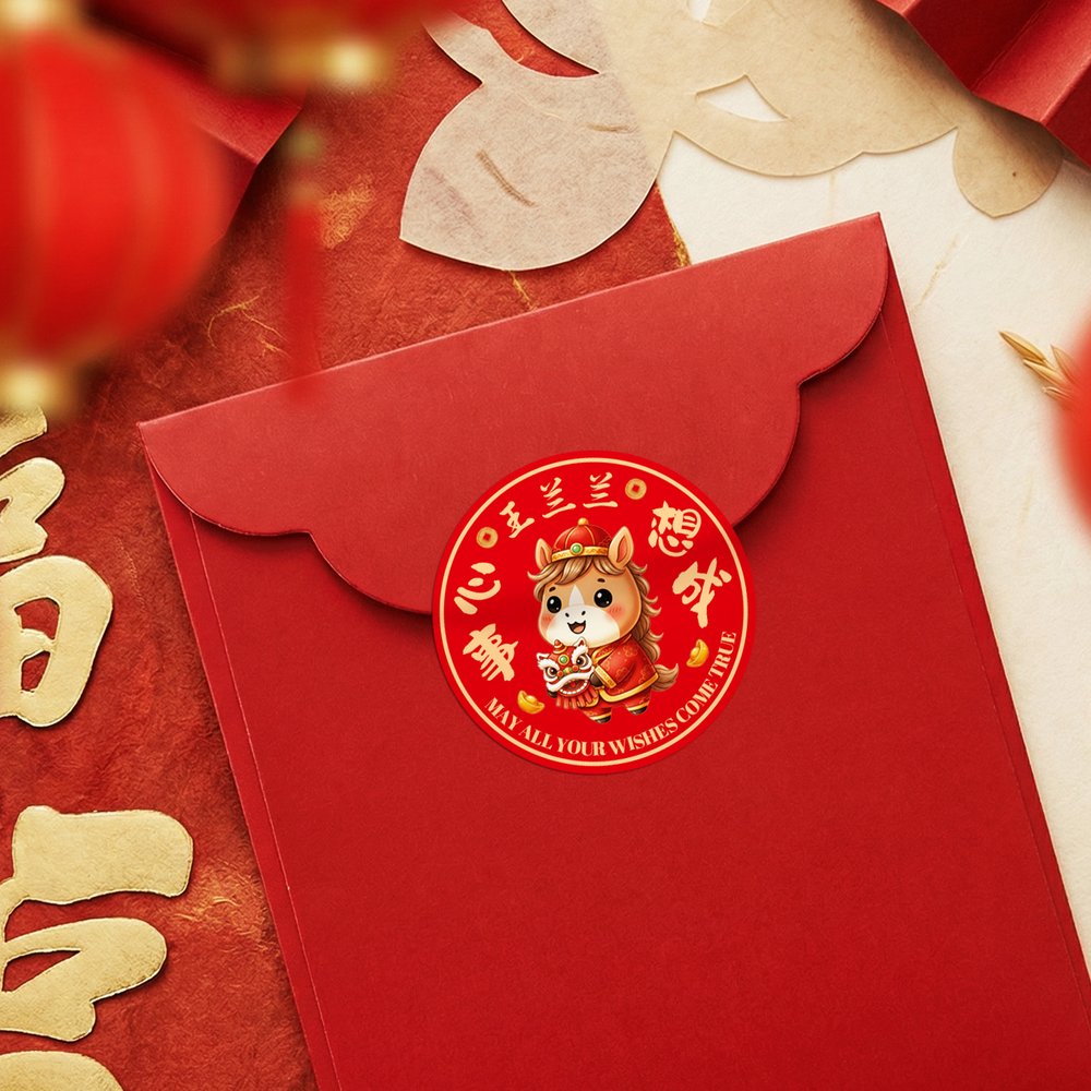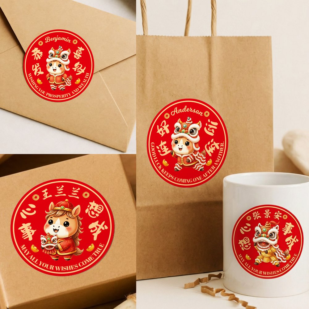 Questi affascinanti adesivi presentano i simboli del Capodanno lunare, tra cui cavalli, lingotti, danze del leone, nomi personalizzati e frasi di buon auspicio. I deliziosi disegni esaltano lo spirito di festa, rendendoli perfetti per le famiglie che celebrano il Capodanno cinese e amano l'atmosfera festiva.
