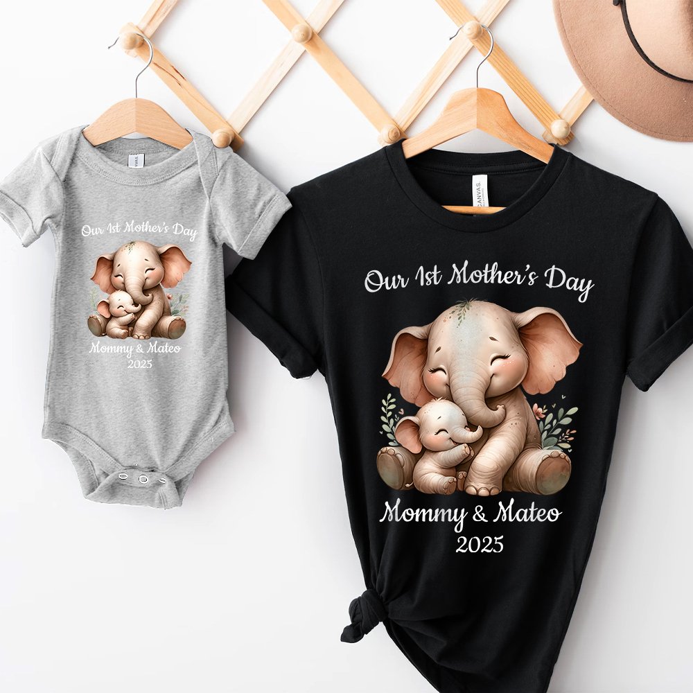 Questa maglietta e questo body per bebè hanno come tema "La nostra prima festa della mamma" e sono caratterizzati da simpatici motivi genitori-figli come conigli, giraffe, elefanti, ecc. che aggiungono infantilità e affetto. È possibile personalizzare i nomi della mamma e del bambino e l'anno di nascita del bambino in base alle proprie esigenze, rendendo questa maglietta e questo body per bambini un ricordo unico. 35 diverse fantasie di animali arricchiscono la scelta.