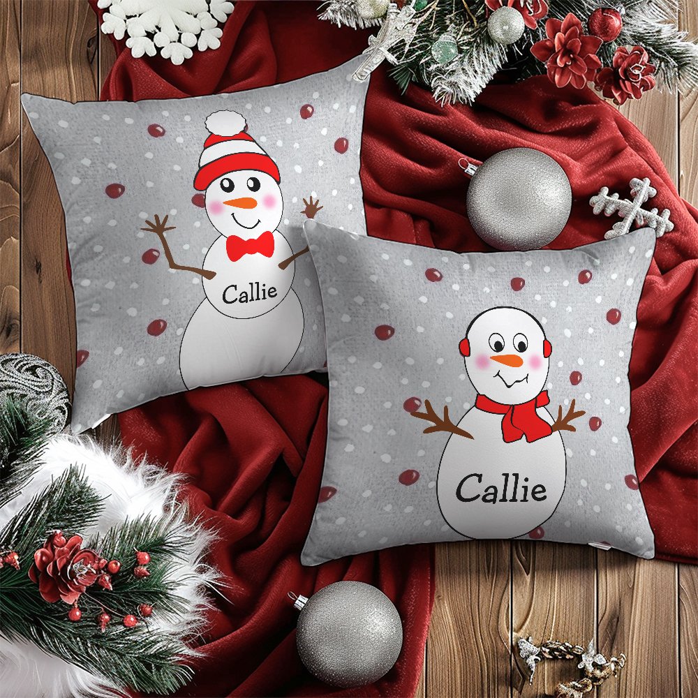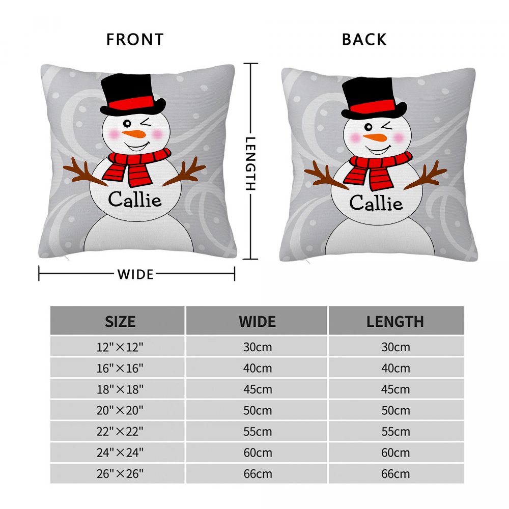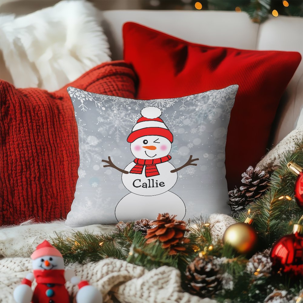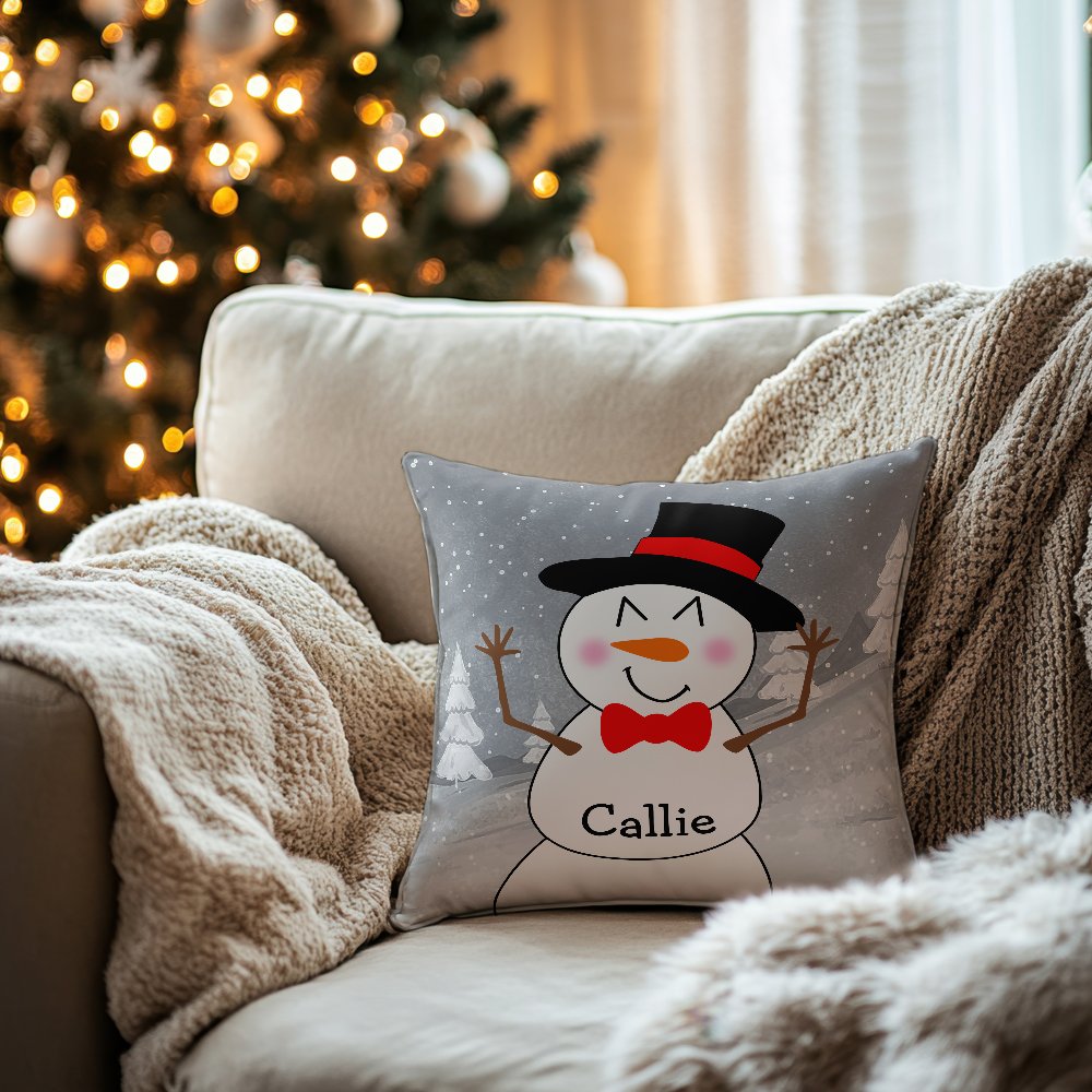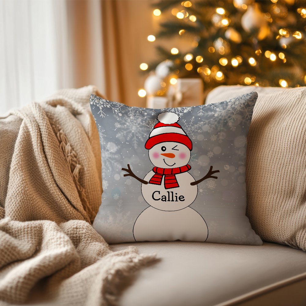 Questo copricuscino combina perfettamente la gioia e il calore delle festività natalizie. Il disegno presenta un vivace pupazzo di neve, fiocchi di neve che cadono e pini eretti, creando una giocosa scena invernale. È possibile aggiungere un nome e scegliere lo stile del pupazzo di neve per renderlo un regalo unico che mette in risalto la particolarità di ogni destinatario.