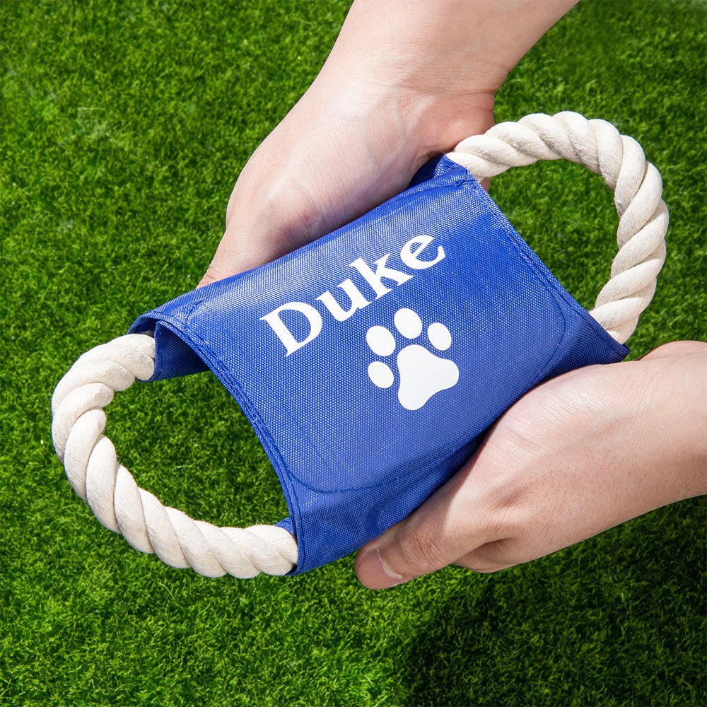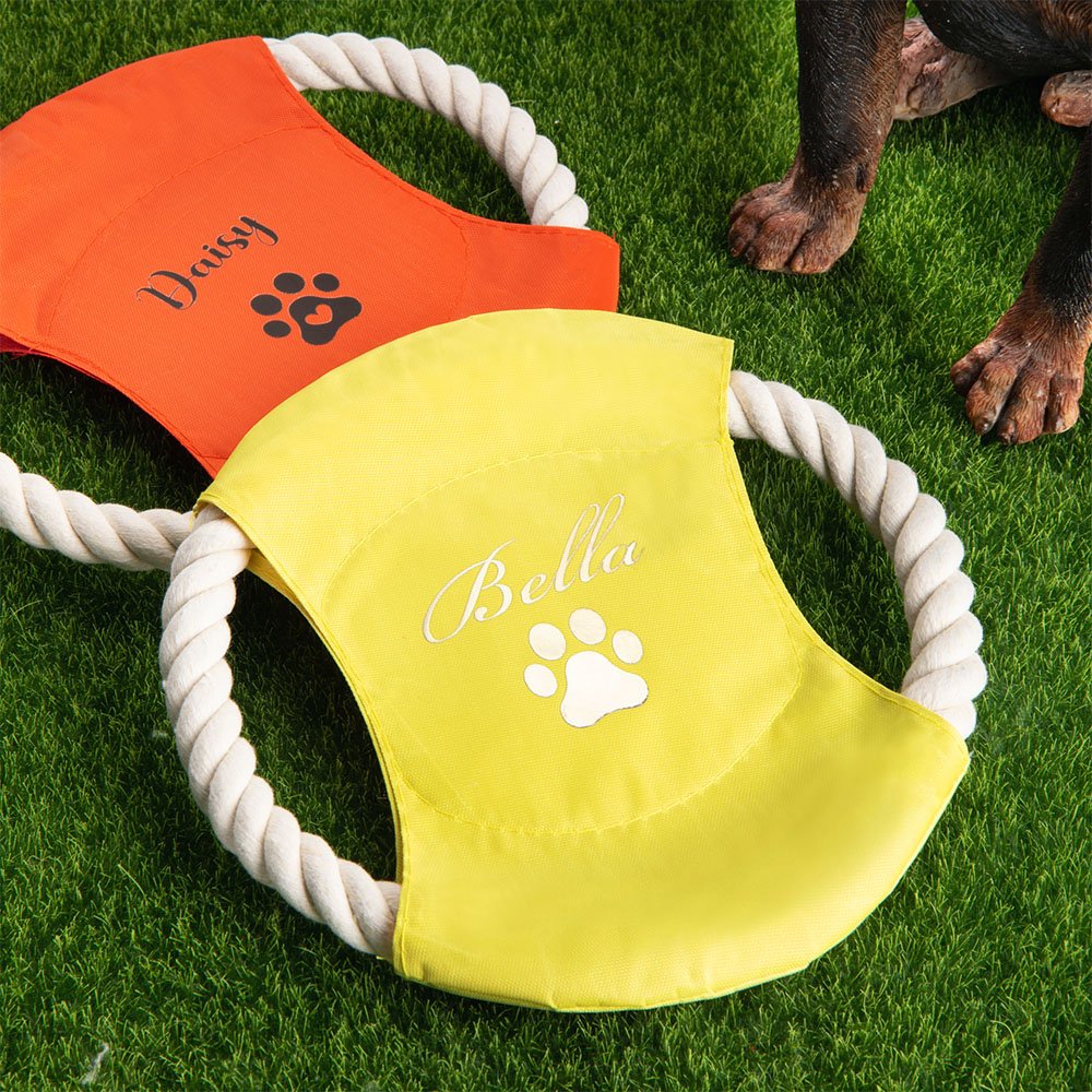 Realizzato in corda di cotone selezionata e tessuto oxford impermeabile, questo disco volante per cani è costruito per resistere a giochi e masticazioni rigorosi. È stato progettato per essere sicuro per i cani, senza bordi taglienti o materiali nocivi, garantendo il benessere del vostro animale durante il gioco.