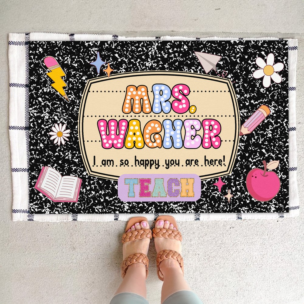 Caratterizzato da un classico stile a quaderno, può personalizzare i nomi degli insegnanti e scegliere tra 2 stili, compresi messaggi esclusivi come "Welcome to Classroom" e "I'm so happy you are here". I vivaci motivi abbinati ai contenuti personalizzabili trasformano lo zerbino in un "biglietto di benvenuto personalizzato" all'ingresso della classe.