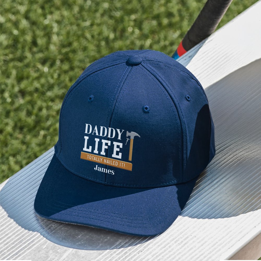 Questo berretto presenta la scritta "DADDY LIFE" e il logo del martello come elementi centrali del design, creando un look maschile con un design grafico giocoso. L'area personalizzabile con il nome nella parte inferiore eleva il cappello da un accessorio ordinario a un pezzo unico che mostra il vostro stile. Il banner "TOTALLY NAILED IT!" trasmette un senso di fiducia e di celebrazione, creando un pezzo riconoscibile.