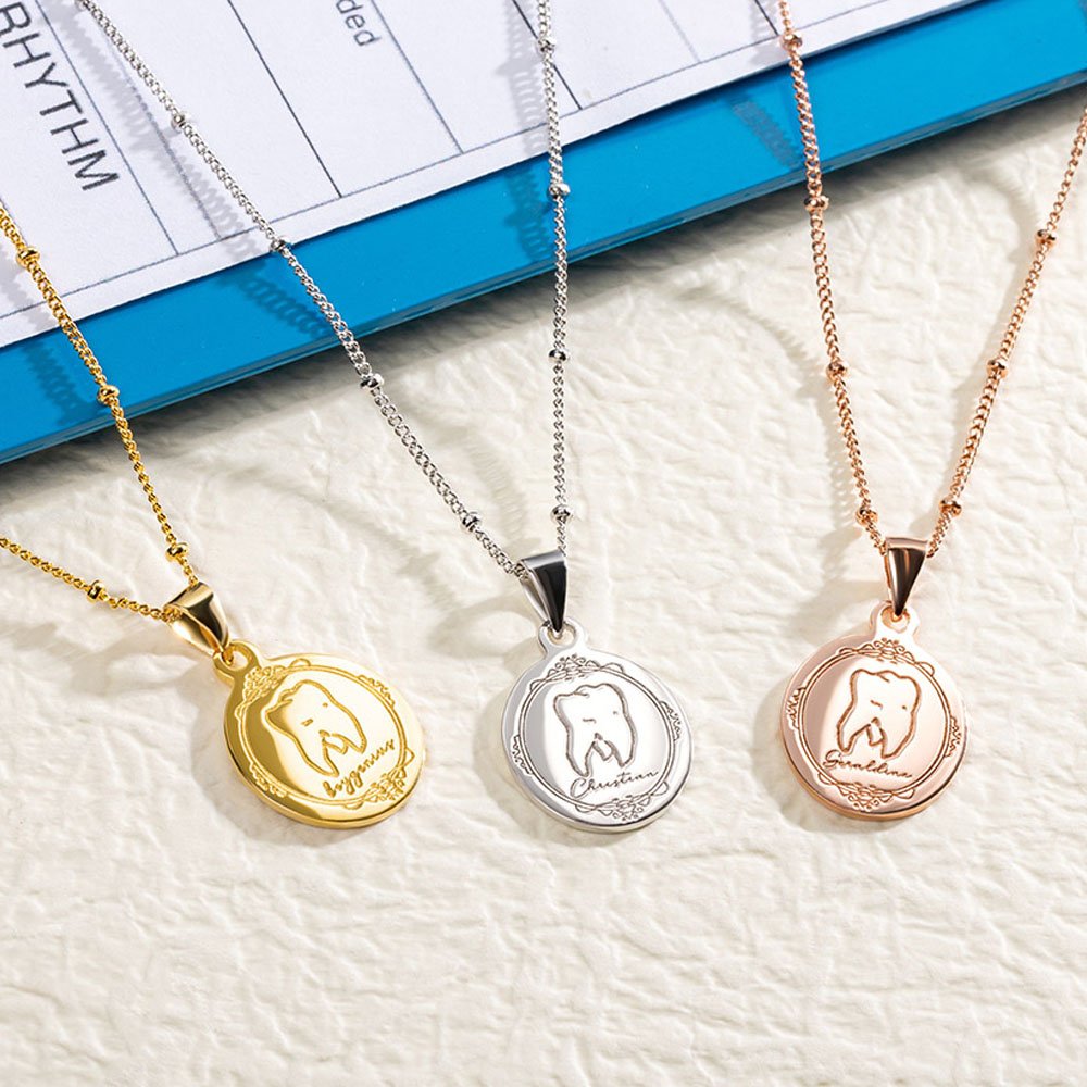 Festeggiate il professionista dentale speciale della vostra vita con la nostra collana personalizzata con motivi dentali, il regalo di compleanno perfetto per un dentista o un igienista dentale. Non solo questa collana è un ottimo regalo di compleanno, ma può essere regalata anche in altre occasioni come la laurea, la promozione o come ringraziamento per il loro duro lavoro e la loro dedizione alla salute orale.
