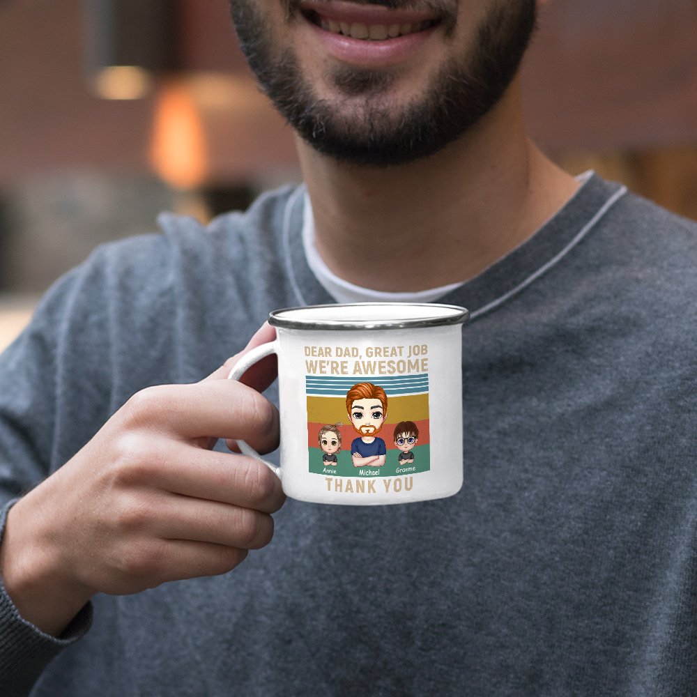 Realizzata in materiale smaltato di alta qualità, questa tazza è resistente e duratura e rappresenta la scelta ideale per le attività all'aperto come il campeggio e le escursioni. La sua struttura leggera la rende facile da trasportare. La tazza ha una capacità di 11 once, la dimensione giusta per gustare una tazza di caffè o di tè.
