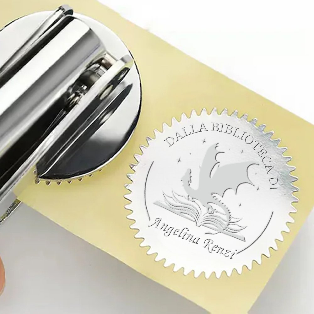 Questo strumento portatile e unico è l'accessorio perfetto per lettori appassionati, bibliotecari e chiunque abbia un grande amore per i libri. Con un timbro rapido e semplice, il loro nome sarà impresso sulla copertina di ogni libro che possiedono. Addio alle confusioni durante le riunioni del club del libro o ai prestiti di libri agli amici che poi non vengono mai restituiti!