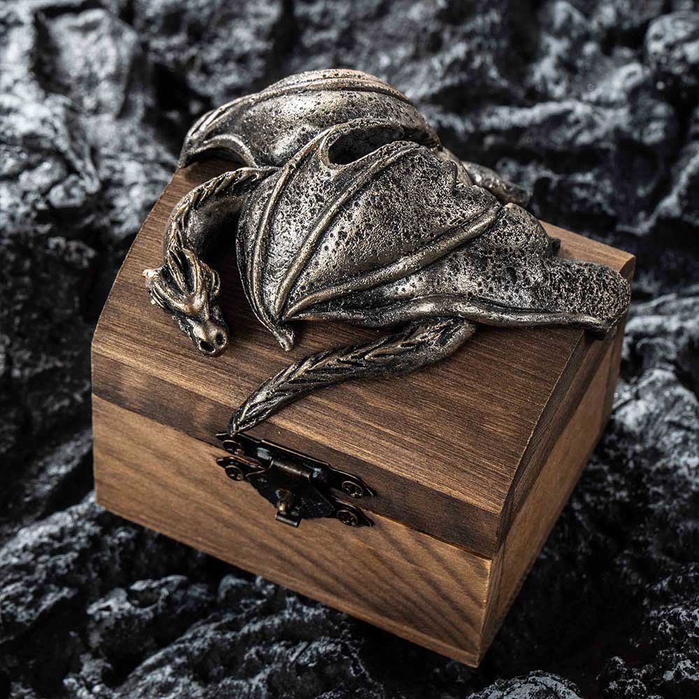 Questo scrigno del drago è una decorazione per la tua casa o un regalo meraviglioso per gli appassionati di draghi, come "Il gioco dei troni", "Il signore degli anelli" e "Dungeons and Dragons (DnD)". È adatto come proposta di matrimonio, o scatola per le fedi nuziali, e la scatola può anche essere utilizzata come souvenir di salvataggio.