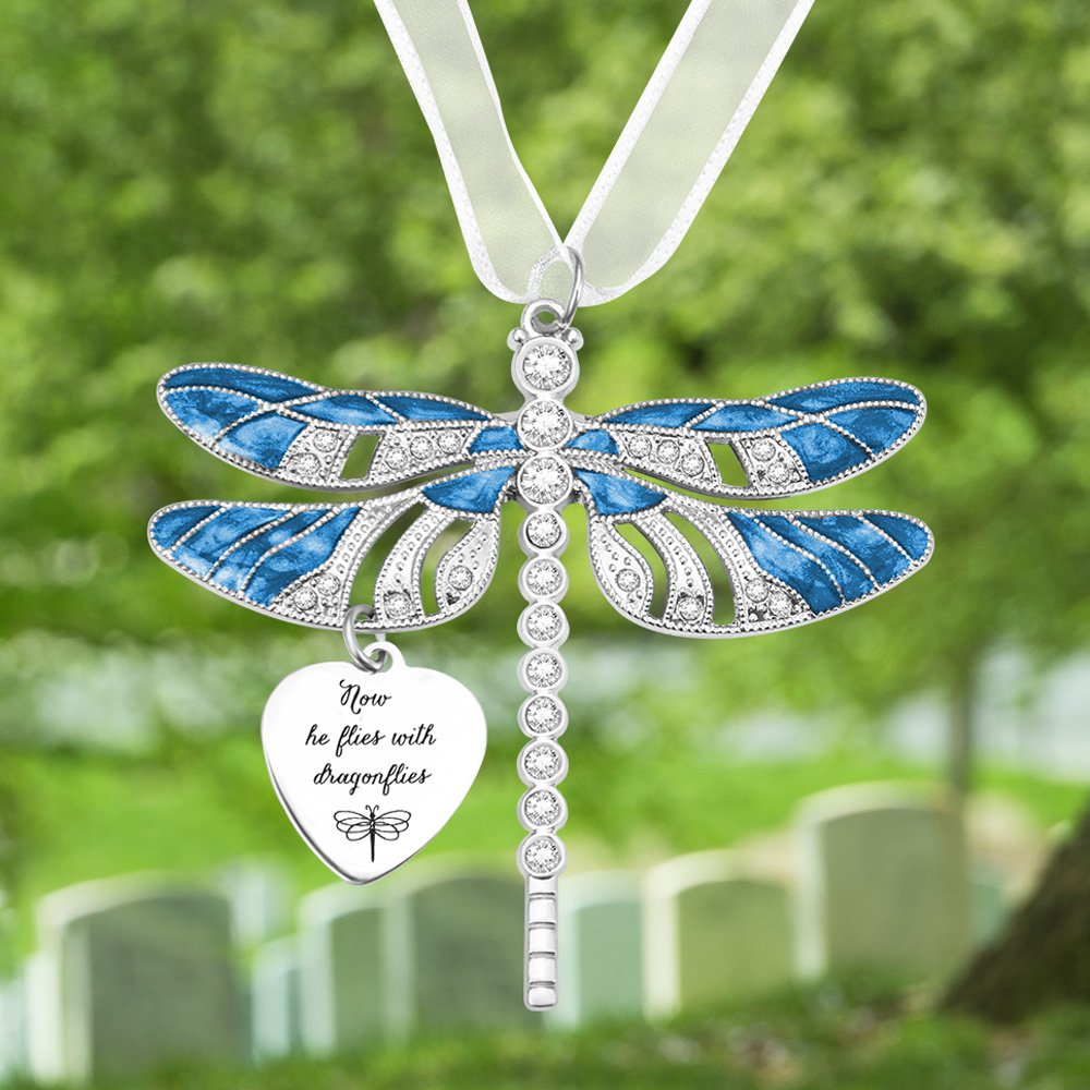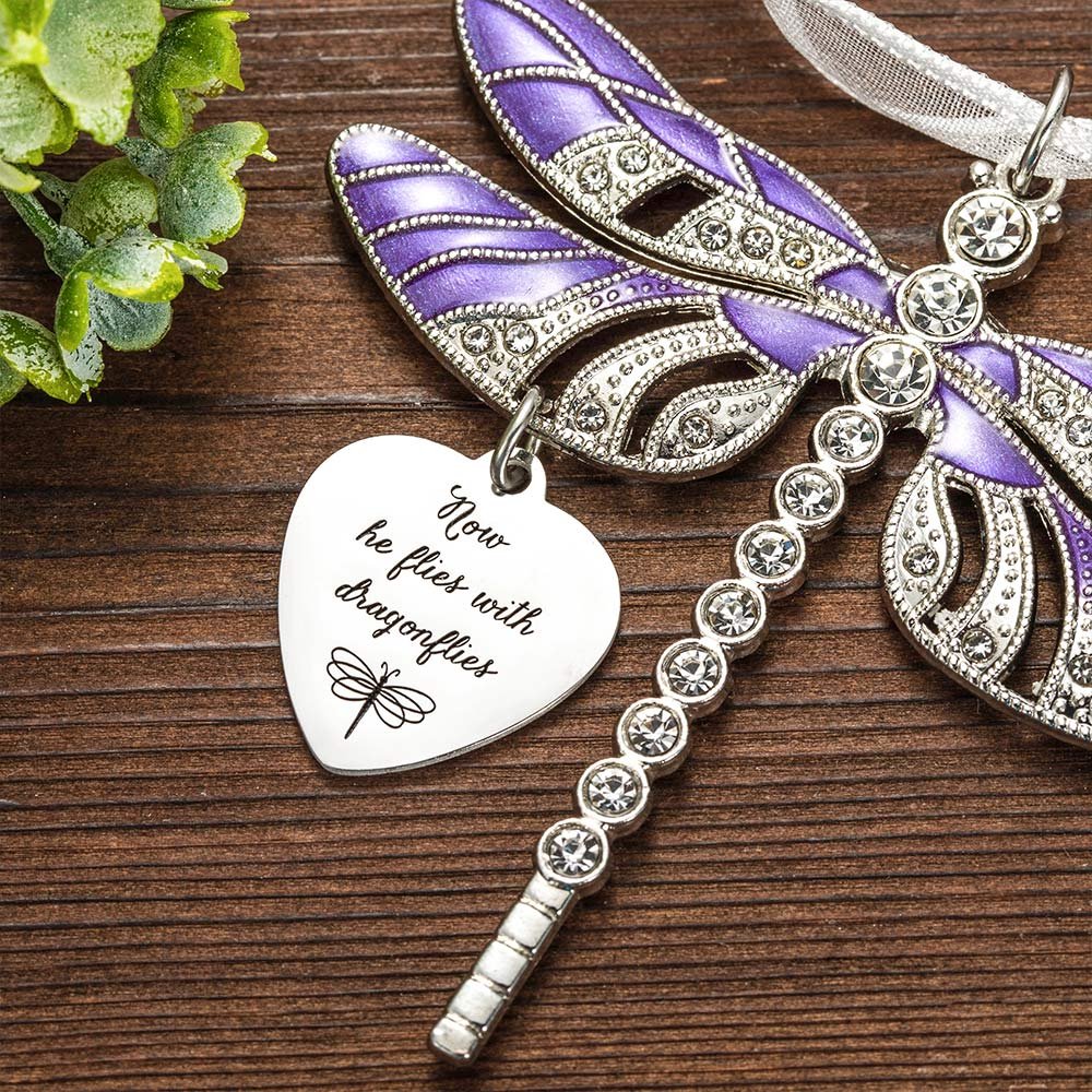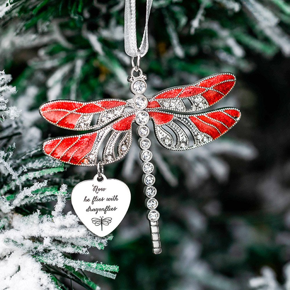 Ora vola con le libellule ornamento commemorativo. Quanto è ispirante. Molto significativo. Finalmente è libera. È possibile aggiungere un testo al ciondolo. Una bella libellula da appendere alla finestra, alla parete, all'albero di Natale, allo specchietto retrovisore o dove preferite.
